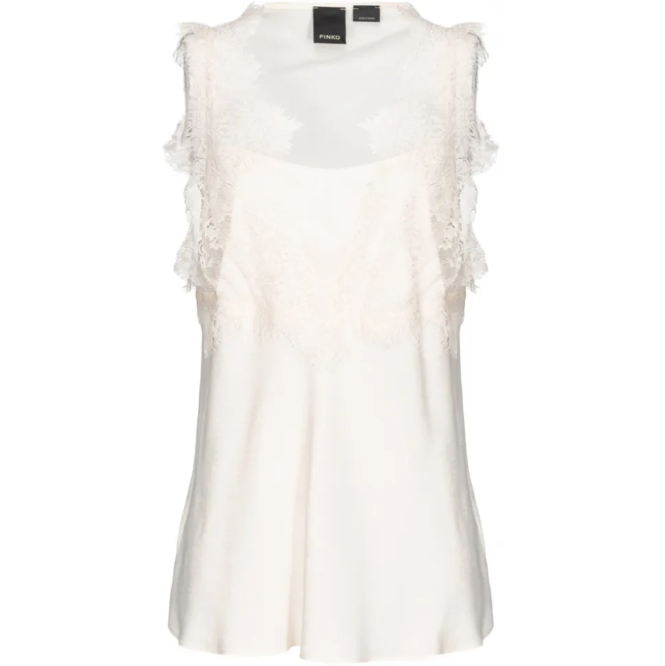 Pinko – Jacquard Print Lace Top – White – Top – Made in Italy – Luxury Exclusive Collection