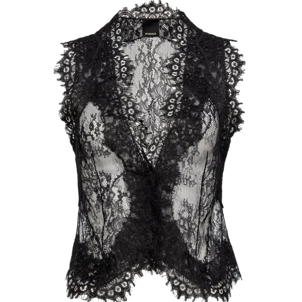Pinko – Lace Bustier Vest – Black – Top – Made in Italy – Luxury Exclusive Collection