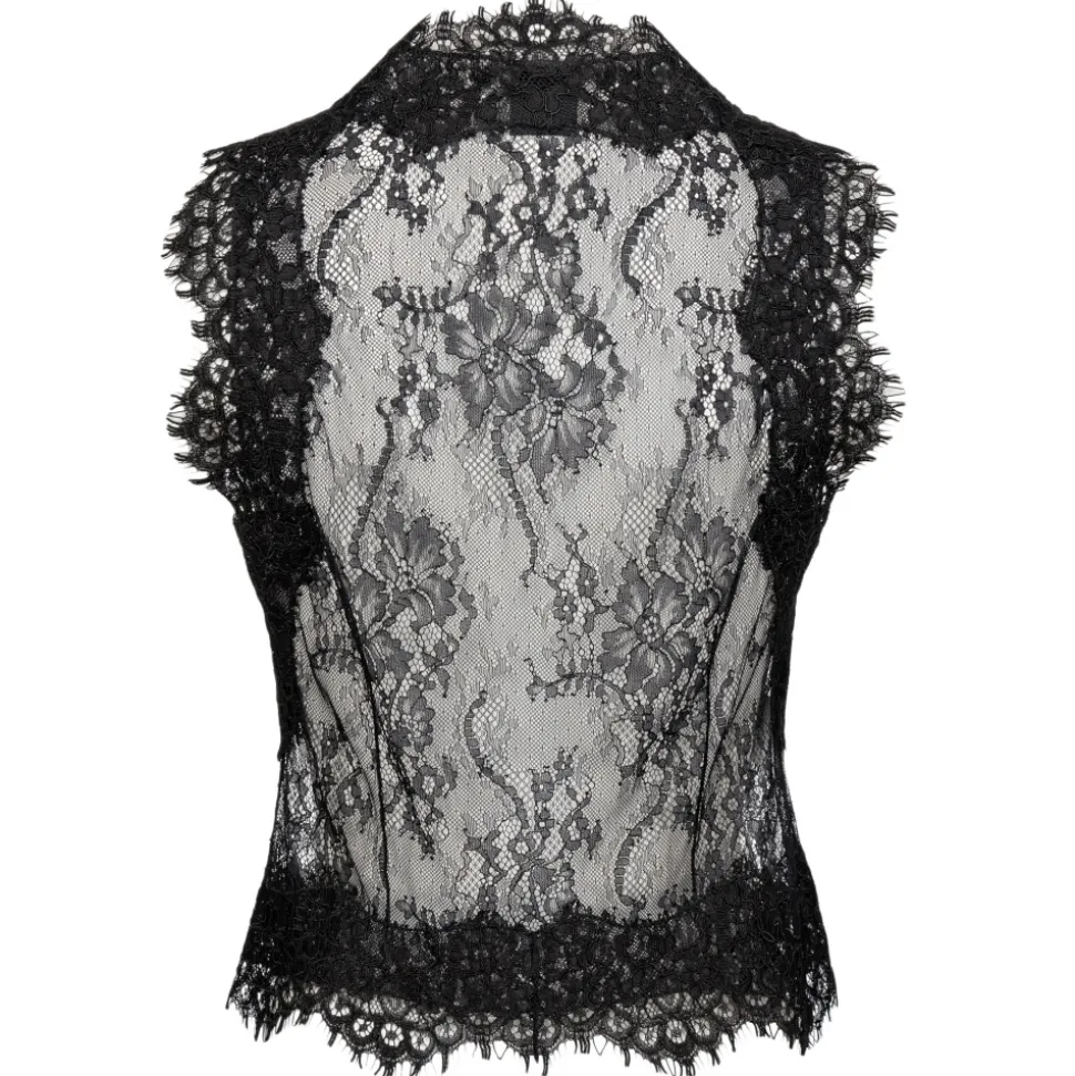 Pinko bustier waistcoat, with front button fastening, made entirely of Valencienne lace.