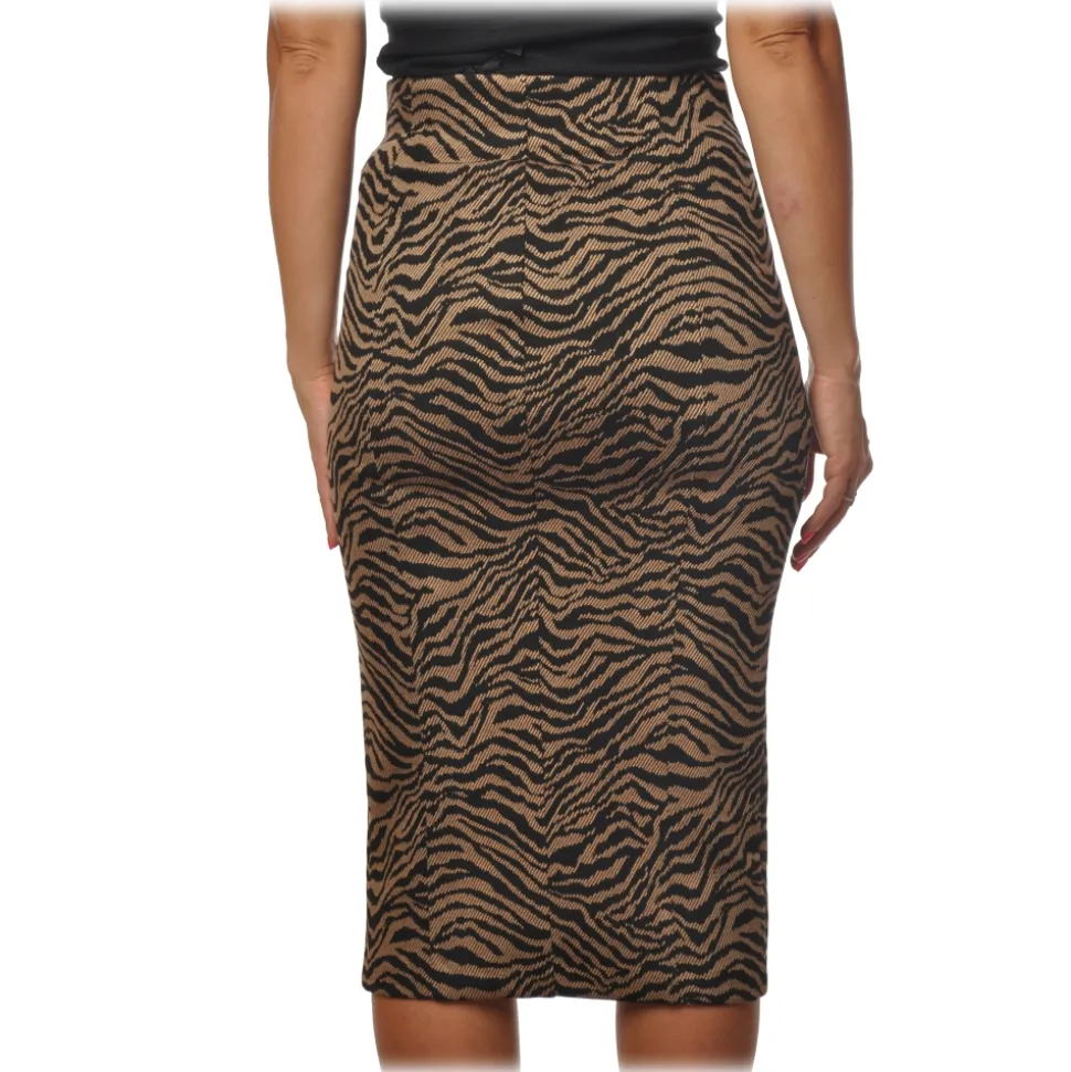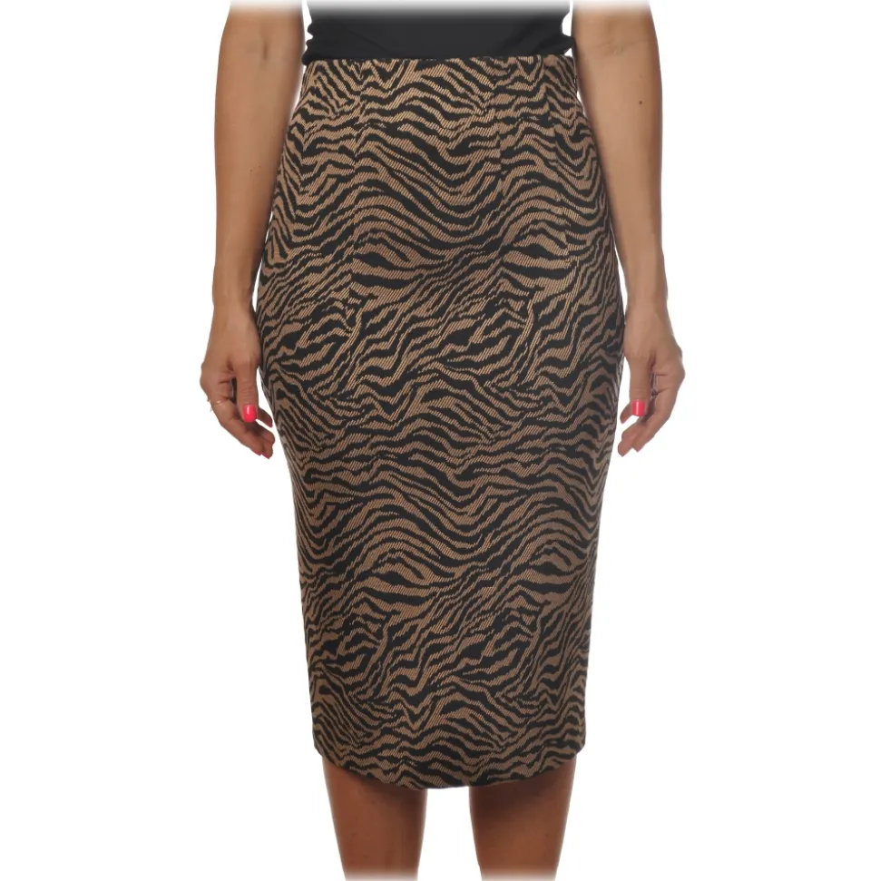 Pinko – Longuette Skirt Ortisei in Zebra Effect Pattern – Black/Beige – Skirt – Made in Italy – Luxury Exclusive Collection