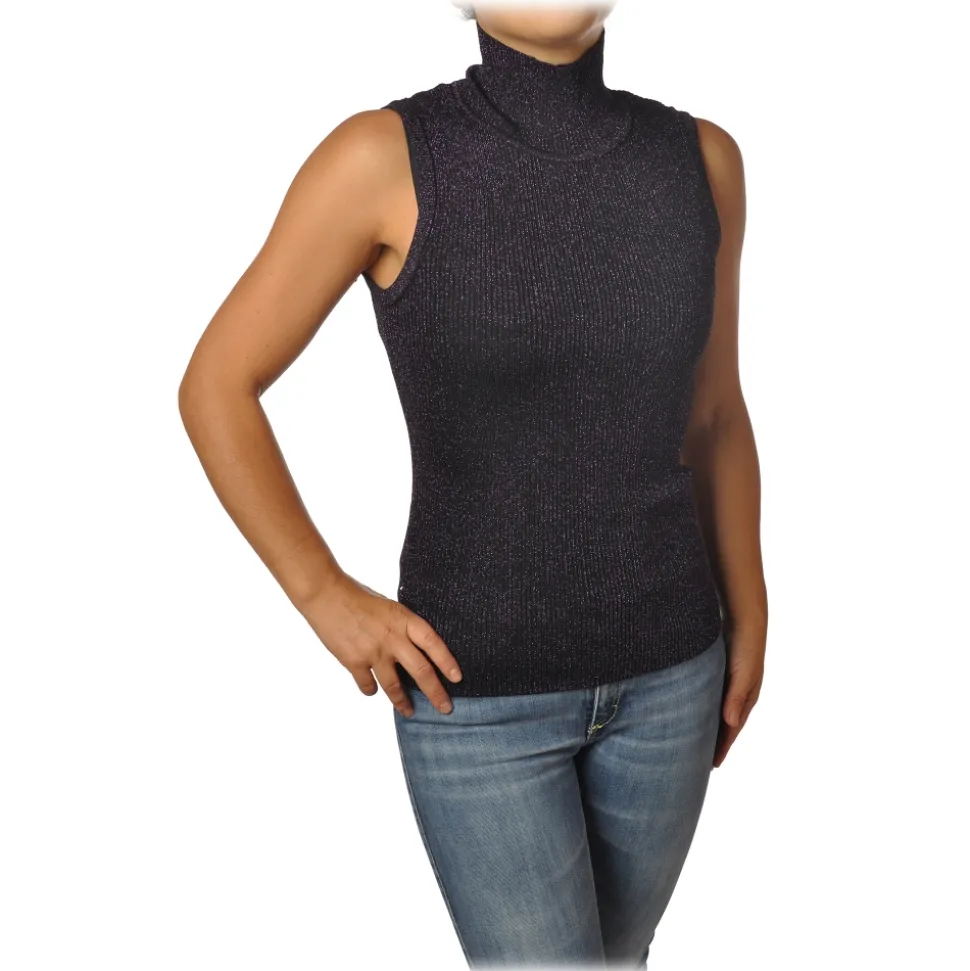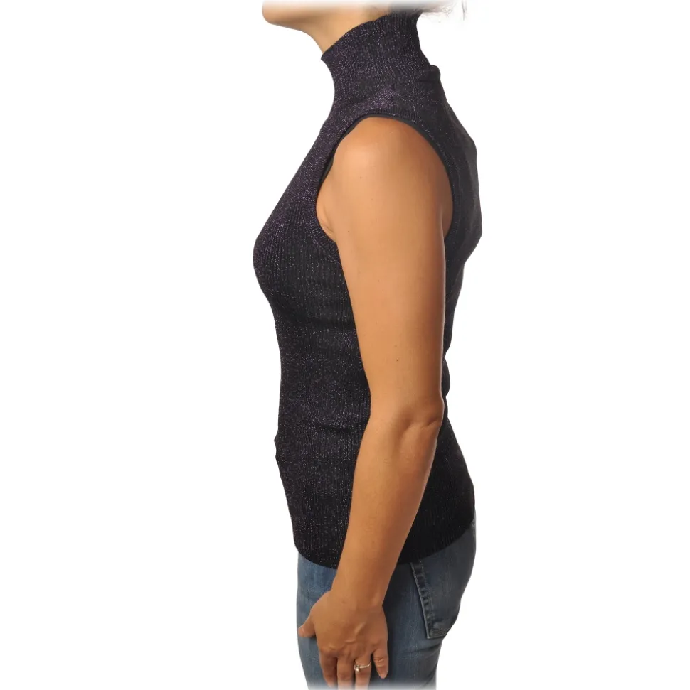 Pinko – Mock Turtleneck Ask Sleeveless in Lurex – Purple – Sweater – Made in Italy – Luxury Exclusive Collection