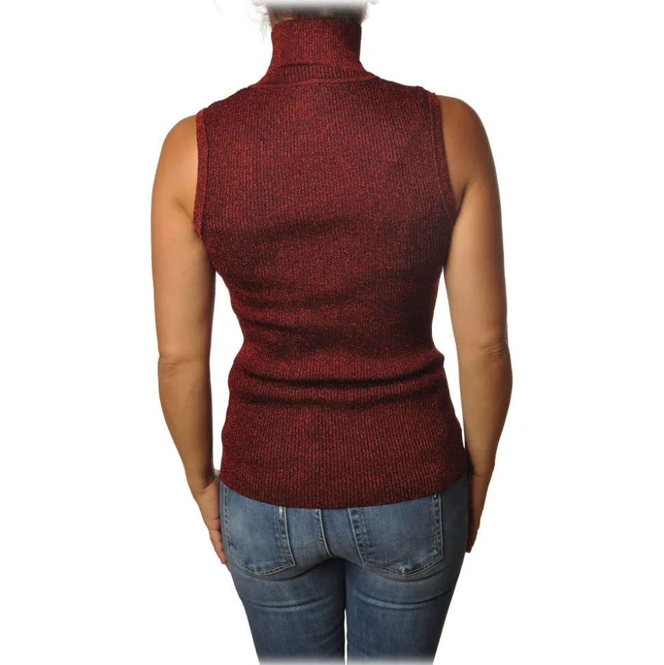 Pinko – Mock Turtleneck Ask Sleeveless in Lurex – Red – Sweater – Made in Italy – Luxury Exclusive Collection