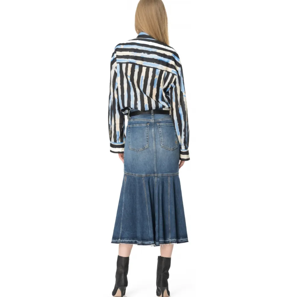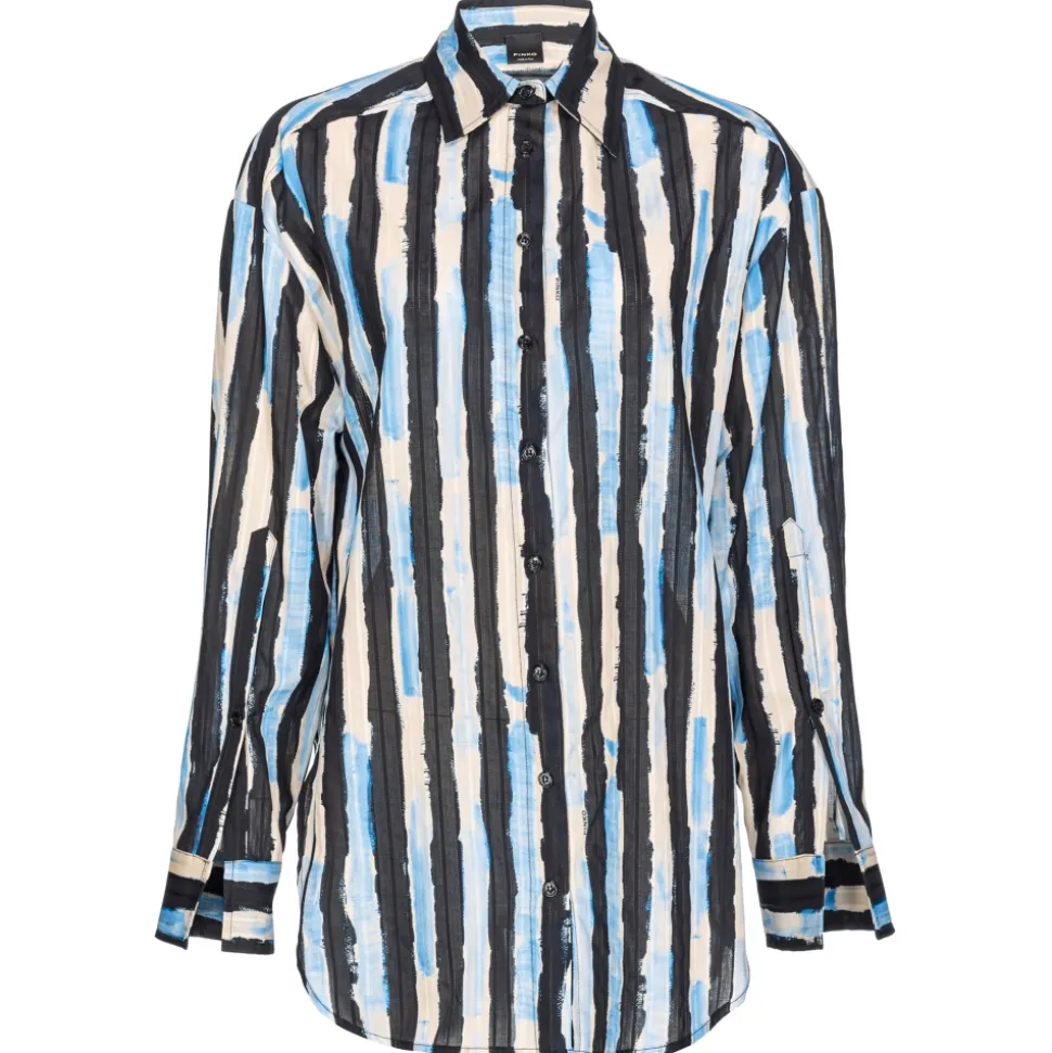 Pinko shirt, long sleeve, over fit, central button fastening, entirely made in a faded wide stripe pattern.