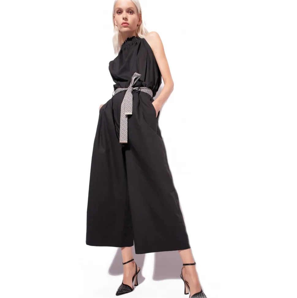 Pinko sleeveless, straight fit, slightly oversized top in cotton poplin. Ribbon drawstring to fasten behind the neck, with metal finials.