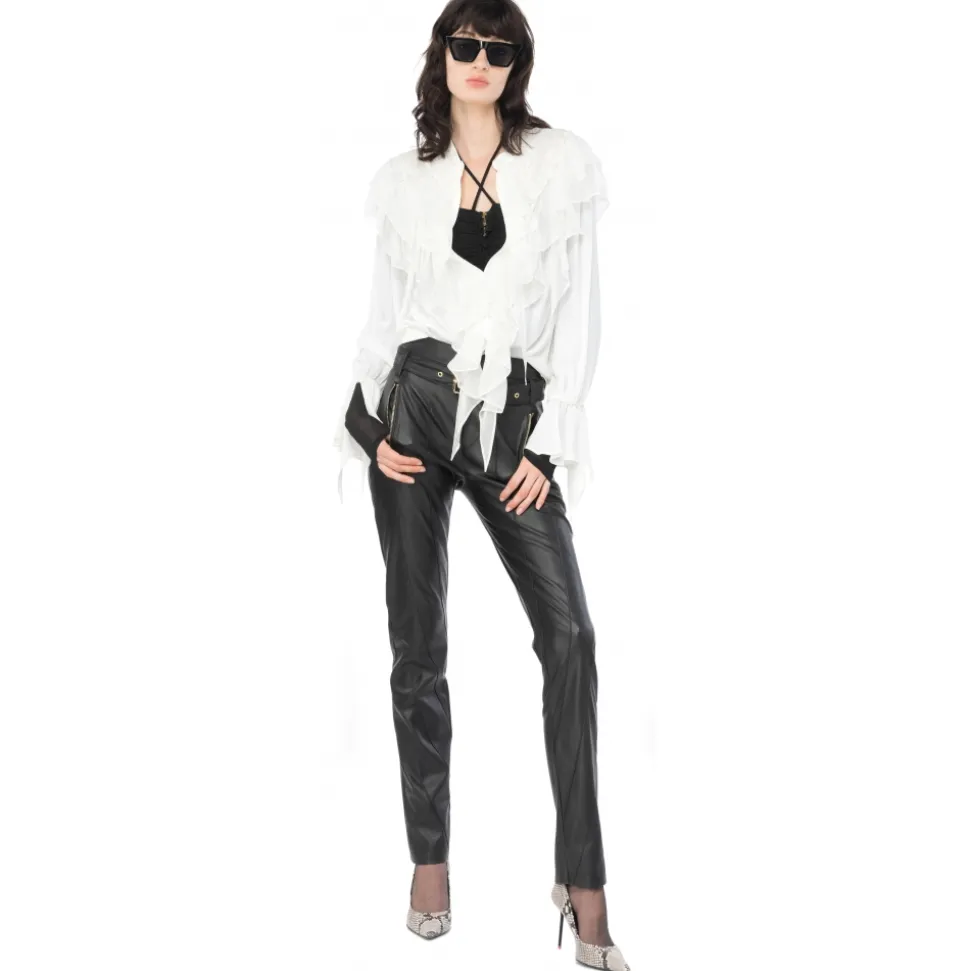 Pinko – Ruffled Blouse – White – Shirts – Made in Italy – Luxury Exclusive Collection