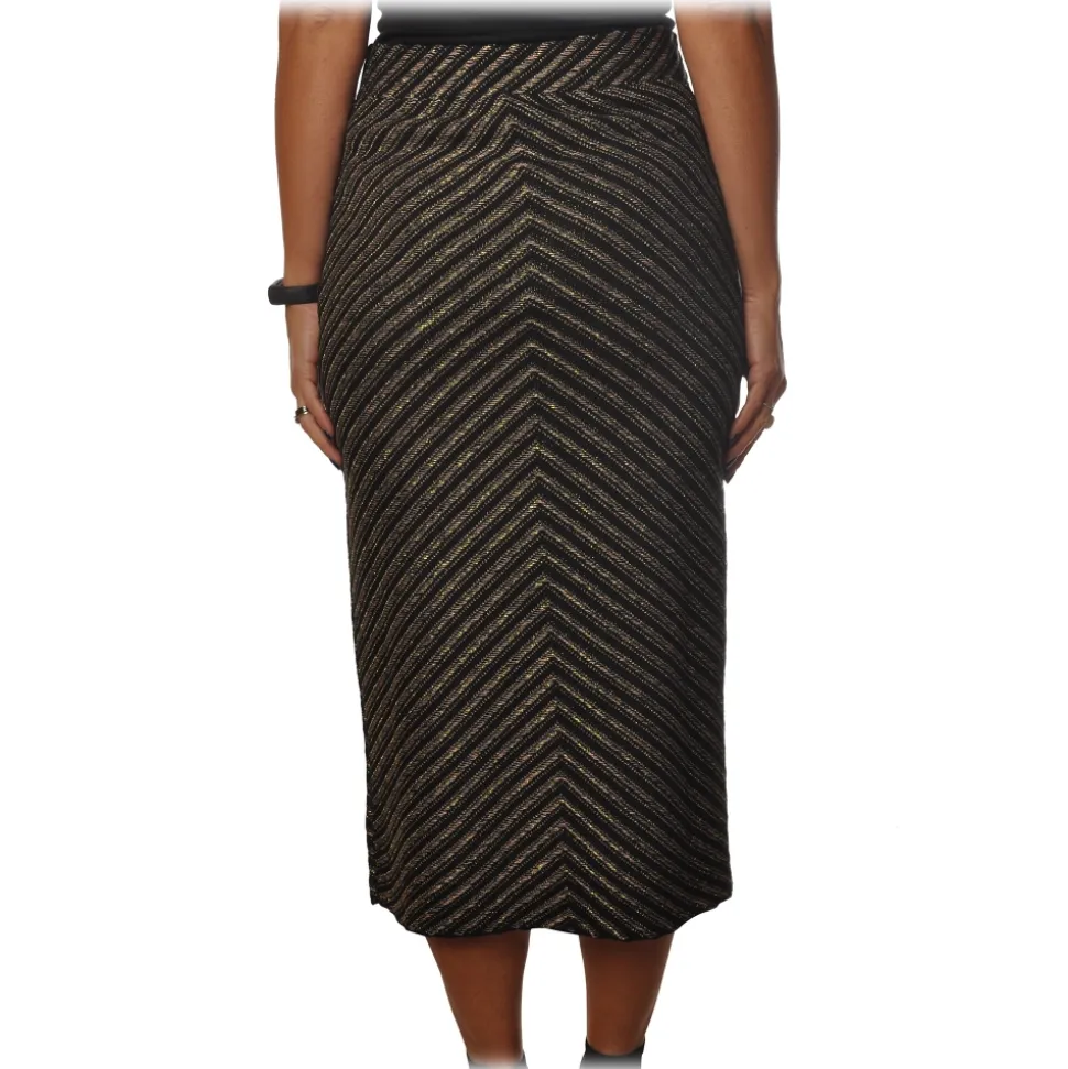 Pinko – Sheath Skirt Gas Midi in Diagonal Laminated Knit – Black – Skirt – Made in Italy – Luxury Exclusive Collection