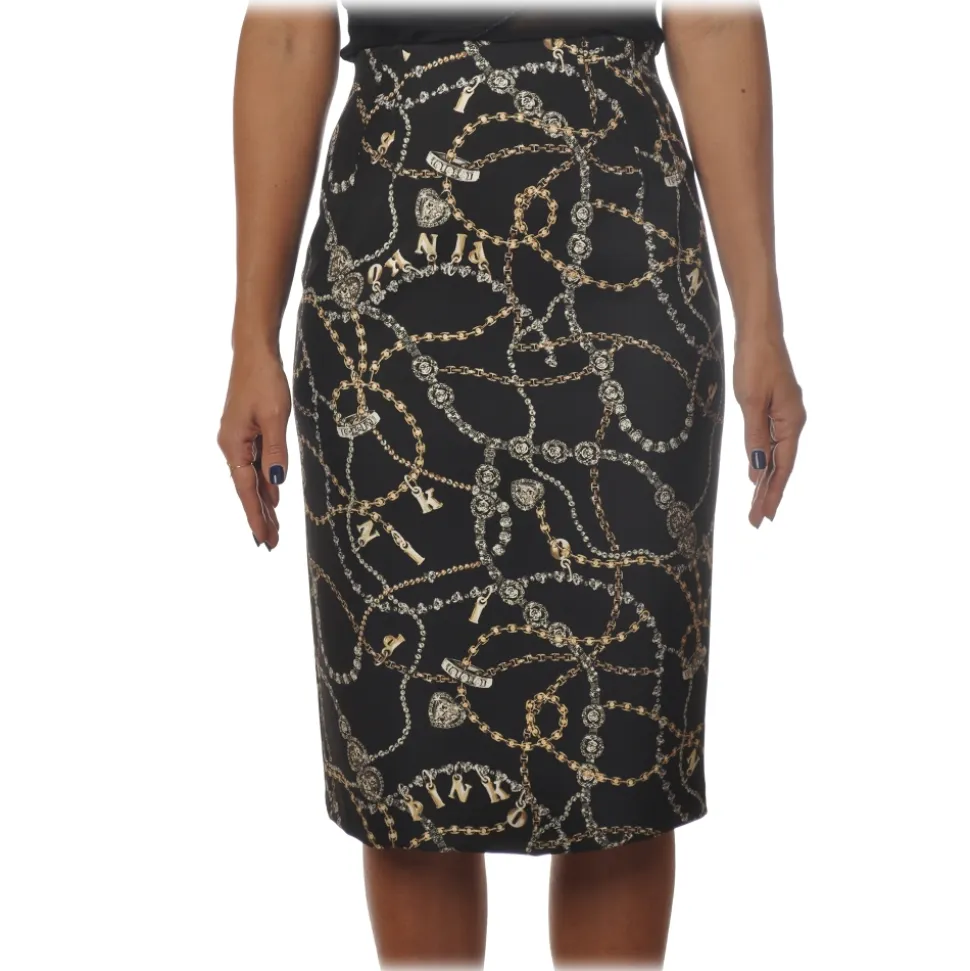 Pinko – Sheath Skirt Illusione Jewel-Patterned – Black – Skirt – Made in Italy – Luxury Exclusive Collection