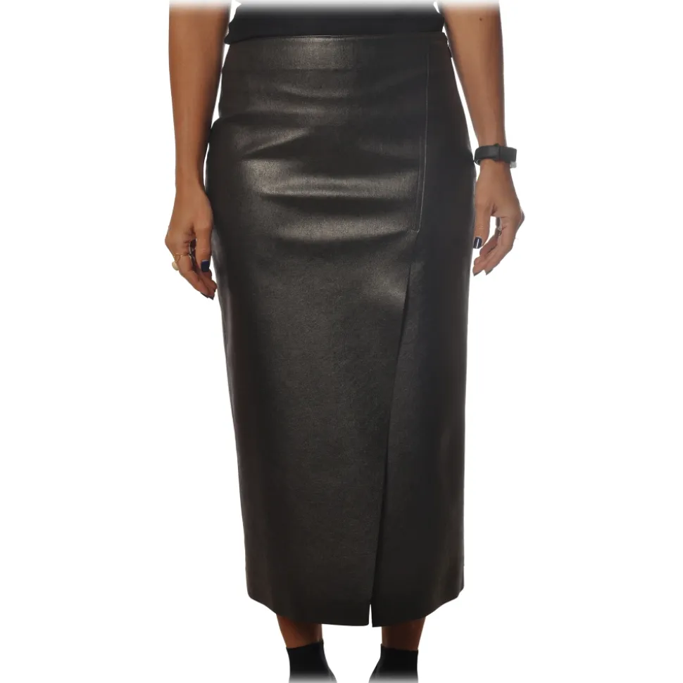 Pinko – Sheath Skirt Nebbia in Faux Leather – Black – Skirt – Made in Italy – Luxury Exclusive Collection