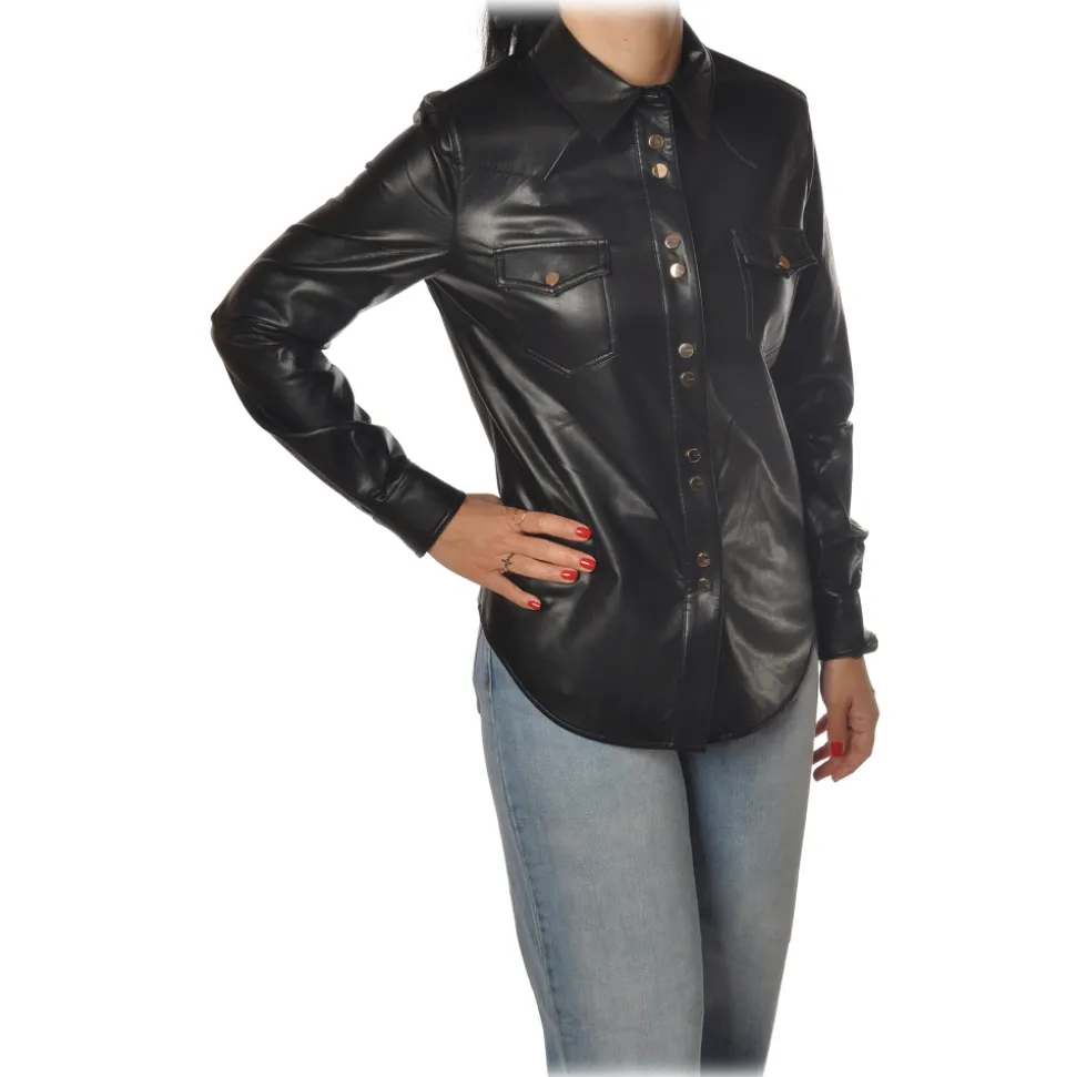 Pinko – Shirt Caroline6 in Faux Leather – Black – Shirt – Made in Italy – Luxury Exclusive Collection