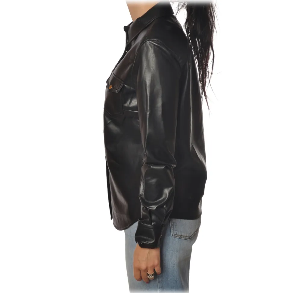 Long-sleeved shirt with front pockets, shoulders with Texan stitching, with clip buttons, entirely made of eco-leather, Pinko.