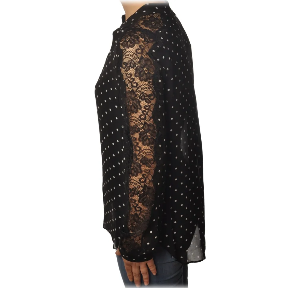 Pinko – Shirt Marronglace with Sleeves in Lace and Pois Pattern – Black – Shirt – Made in Italy – Luxury Exclusive Collection