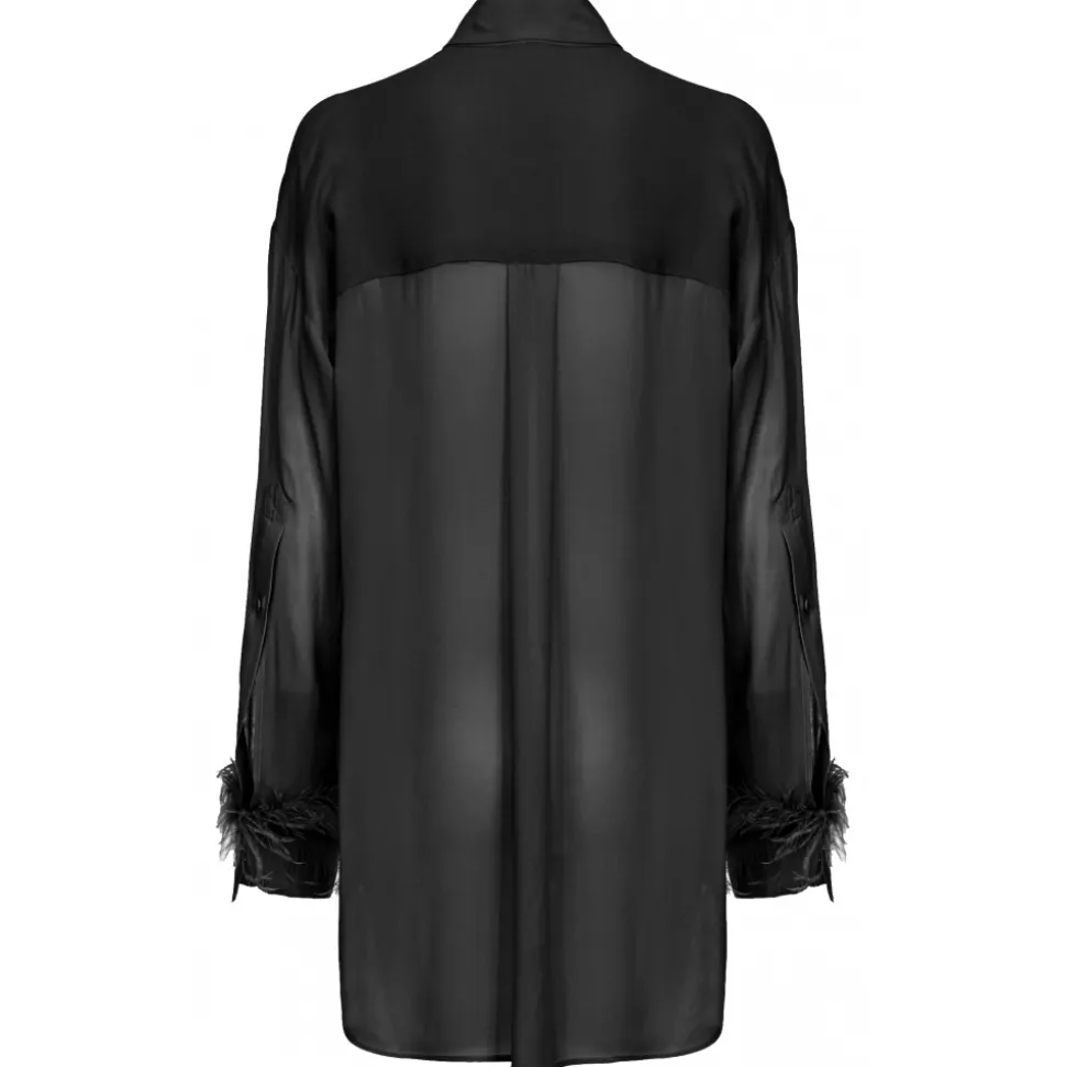 Pinko – Shirt with Feather Trim Cuffs Detail – Black – Shirts – Made in Italy – Luxury Exclusive Collection