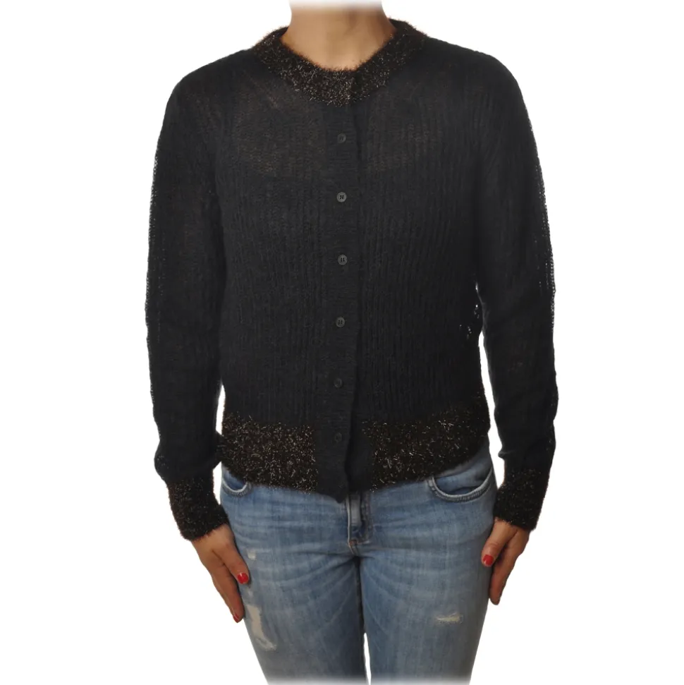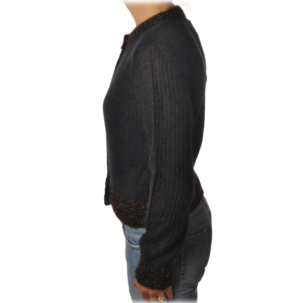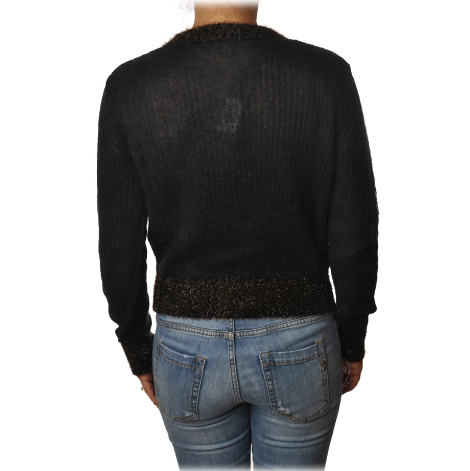 Pinko – Short Cardigan Quantunque with Lurex Details – Black – Sweater – Jacket – Made in Italy – Luxury Exclusive Collection