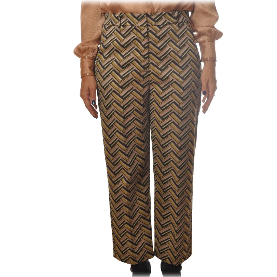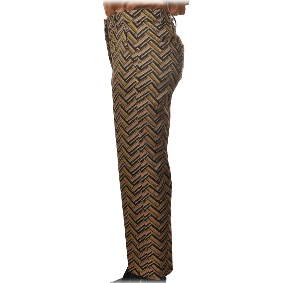 Pinko – Straight Trousers Ghibli3 in Geometric Pattern – Yellow/Pink – Trousers – Made in Italy – Luxury Exclusive Collection