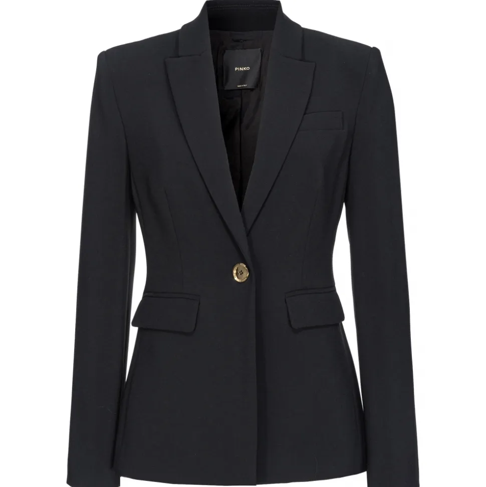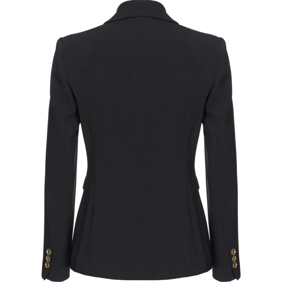 Pinko – Stretch Crepe Fabric Single breasted Blazer – Black – Jackets – Made in Italy – Luxury Exclusive Collection
