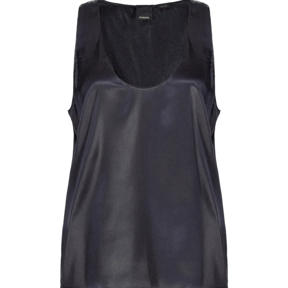 Pinko sleeveless, fluid-volume top in stretch silk satin with a wide front neckline.