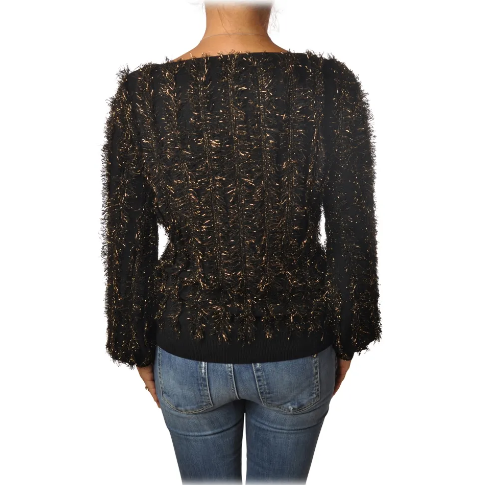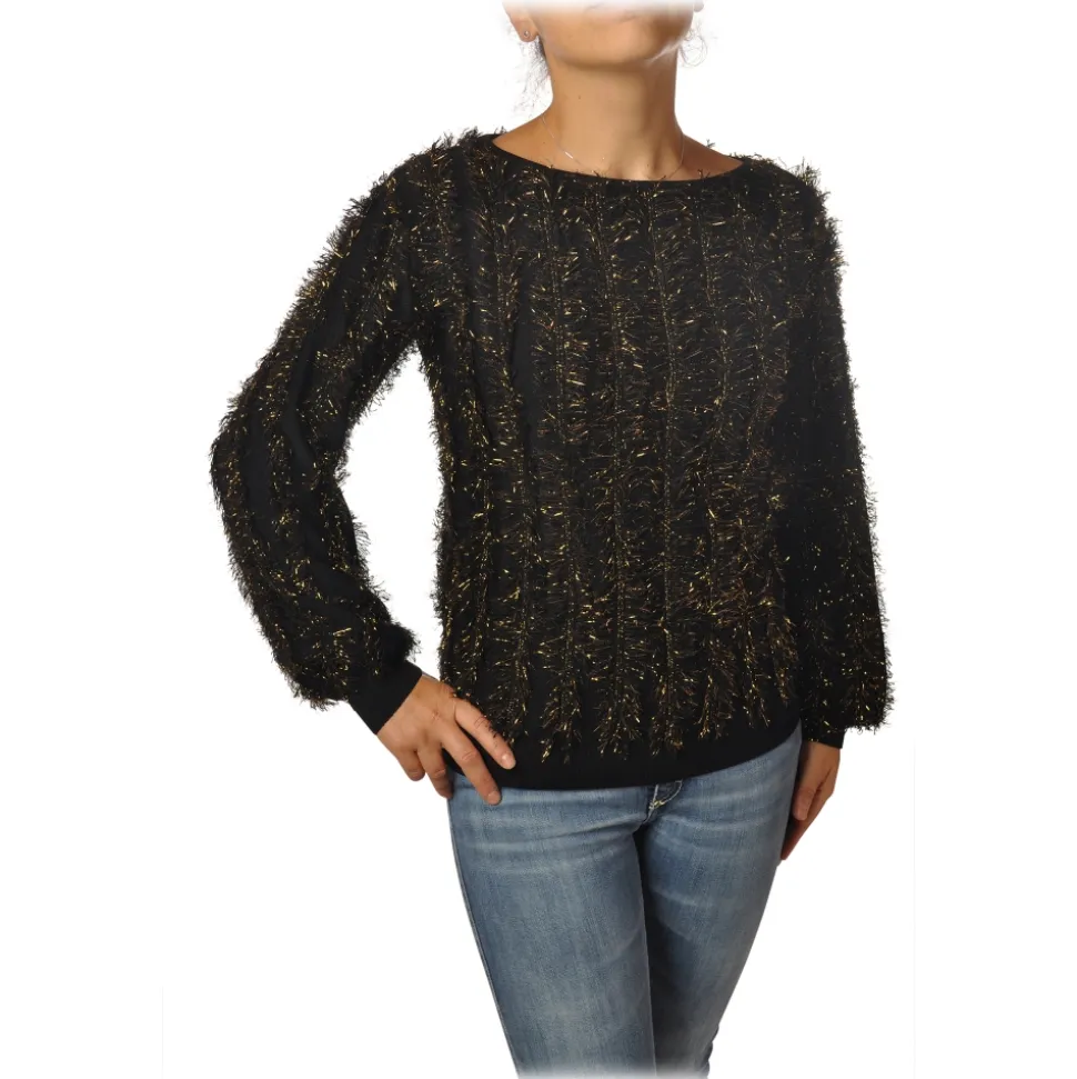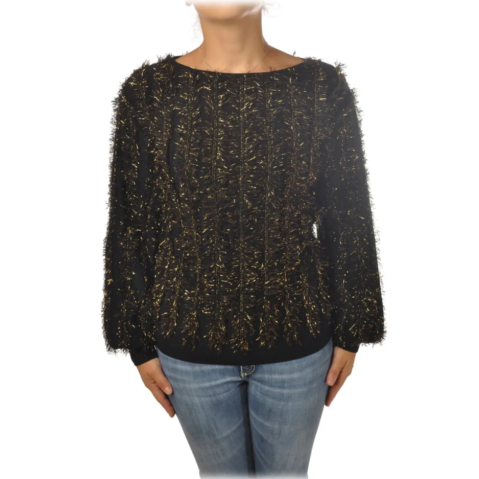 Pinko – Sweater Estonia in Two-tone Lurex Yarn – Black/Gold – Sweater – Made in Italy – Luxury Exclusive Collection
