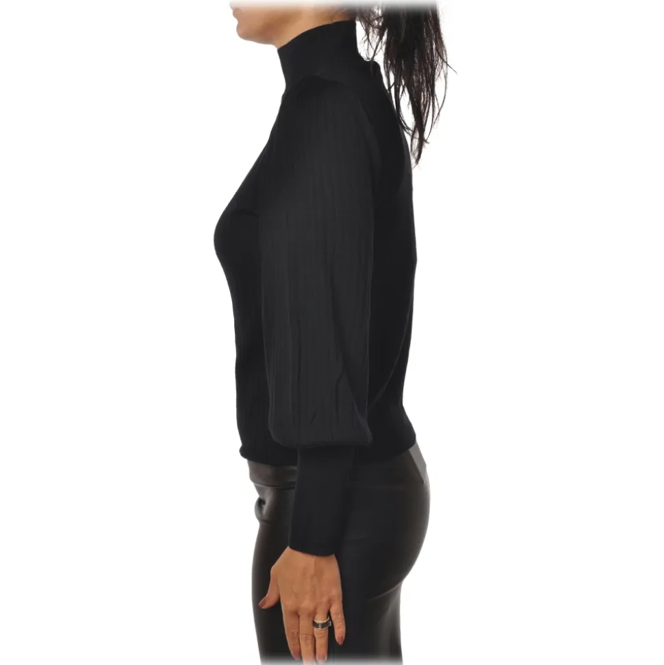 Mock turtleneck sweater with long balloon sleeves, entirely made of ribbed wool, Pinko.