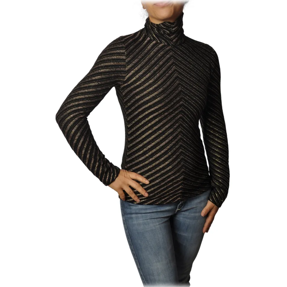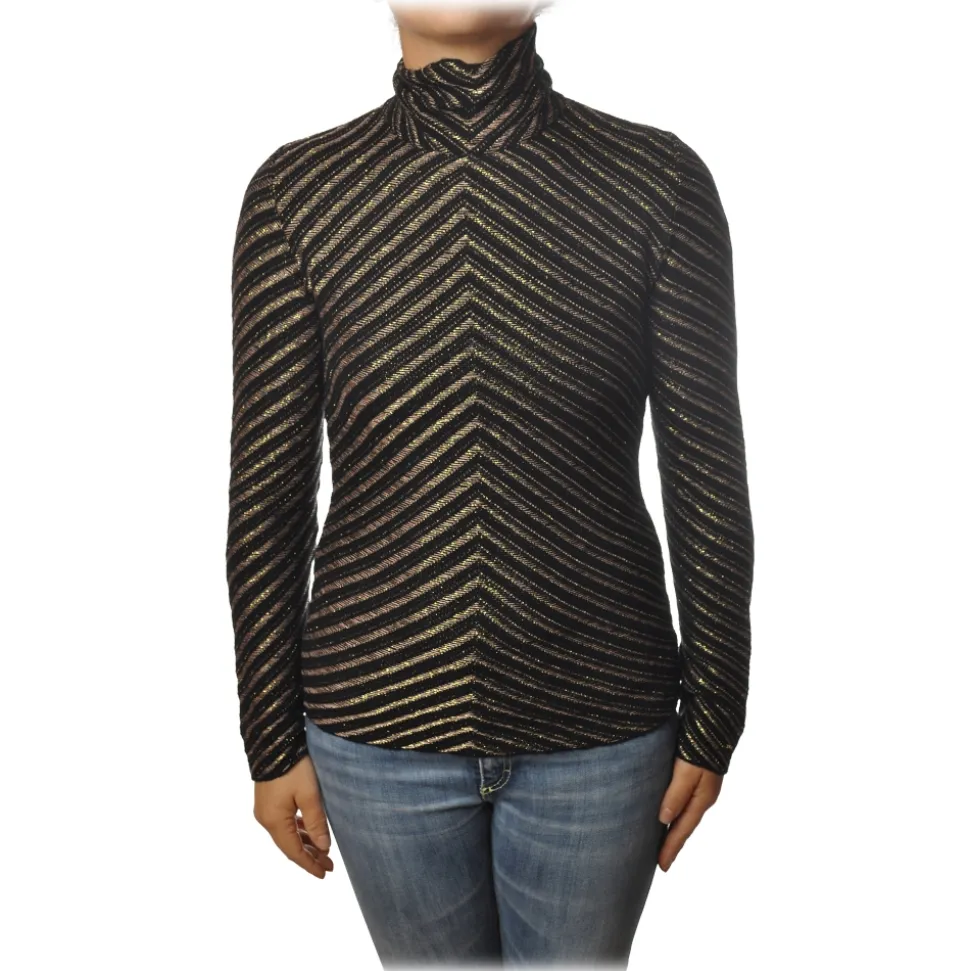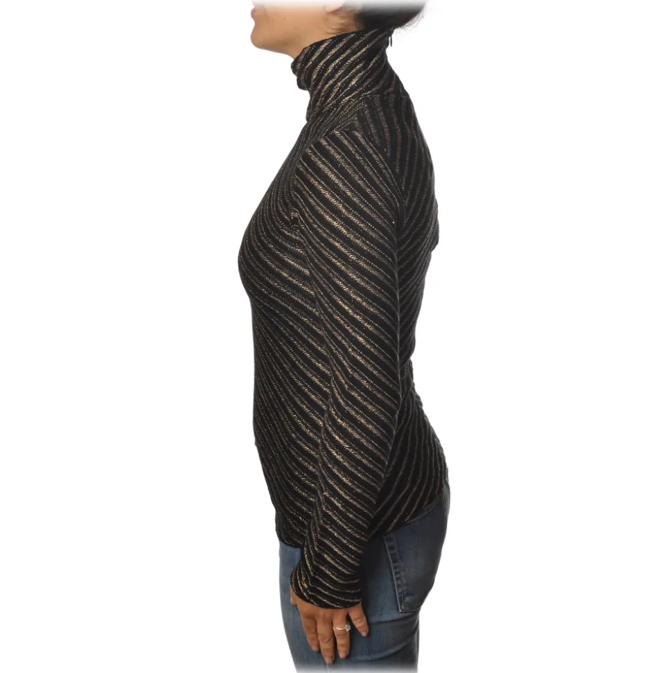 Pinko – Sweater Termometro in Diagonal Laminated Knit – Black/Gold – Sweater – Made in Italy – Luxury Exclusive Collection