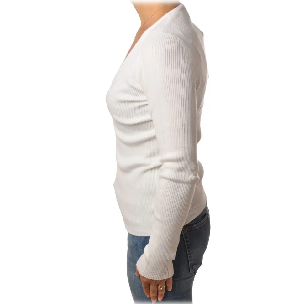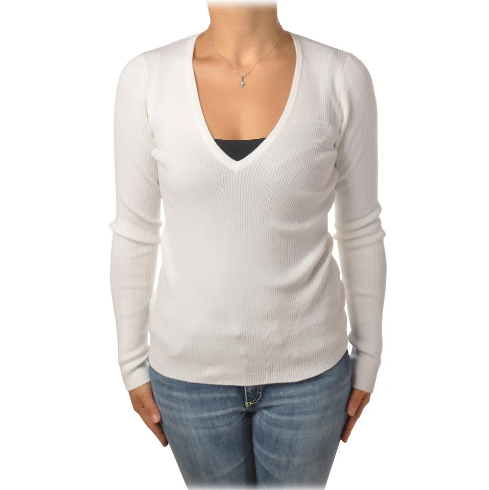 Pinko – Sweater Uruguay with Long Sleeve and V-neck – White – Sweater – Made in Italy – Luxury Exclusive Collection