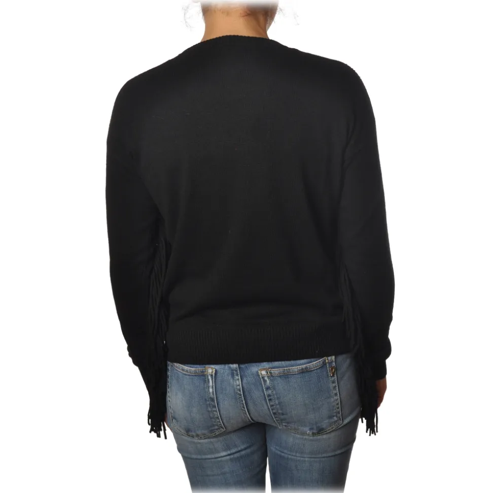 Pinko – Sweater Valgualnera with Fringes and Openwork – Black – Sweater – Jacket – Made in Italy – Luxury Exclusive Collection