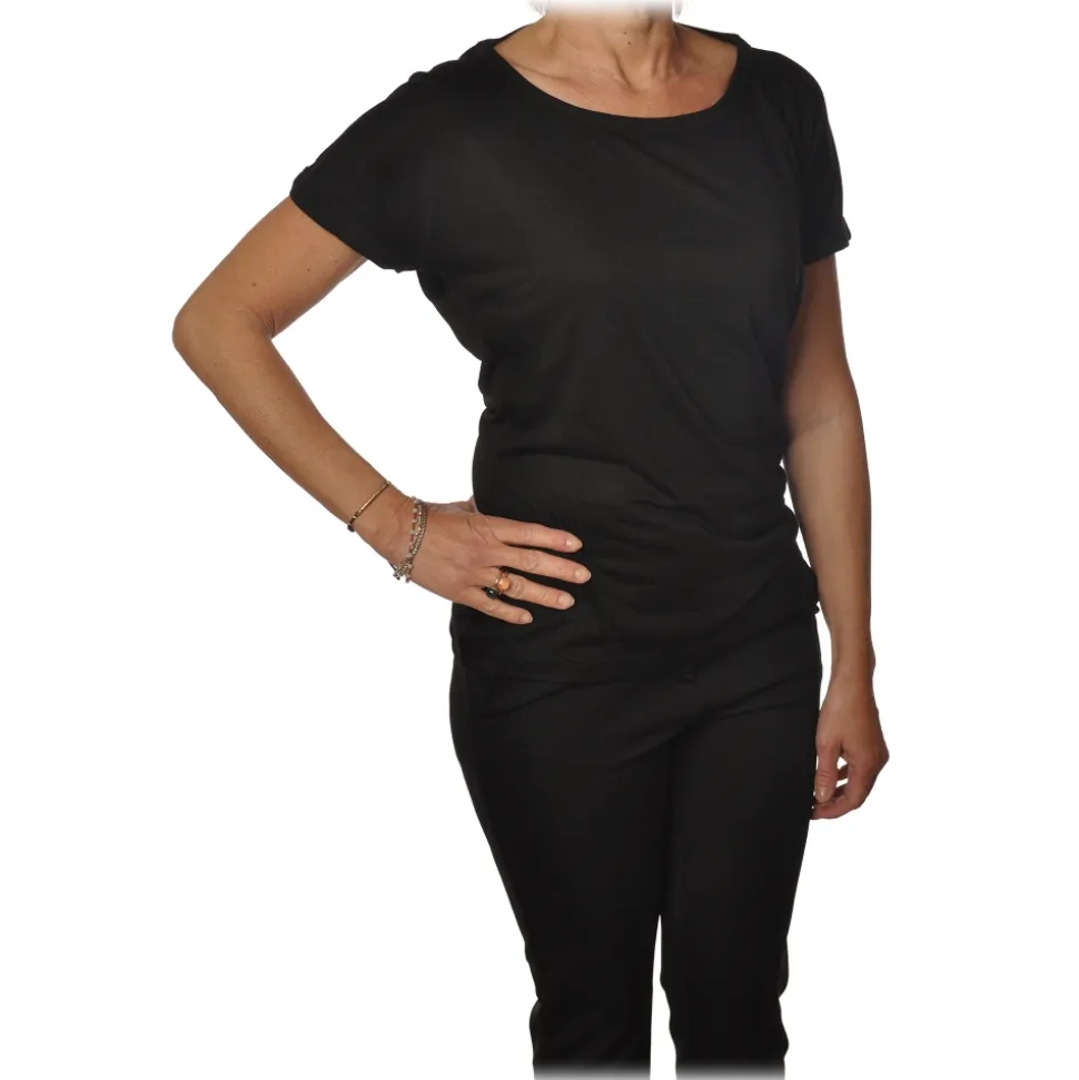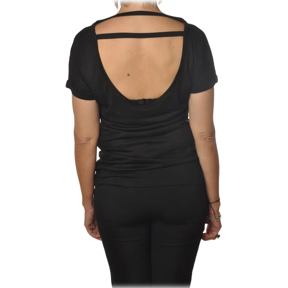 Pinko – T-shirt Hercules with Boat Neck and Laces – Black – T-Shirt – Made in Italy – Luxury Exclusive Collection