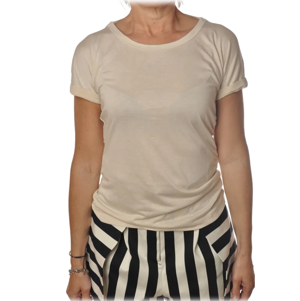 Pinko – T-shirt Hercules with Boat Neck and Laces – Light Beige – T-Shirt – Made in Italy – Luxury Exclusive Collection