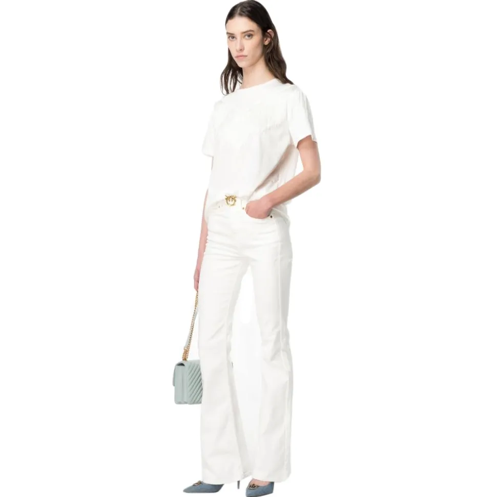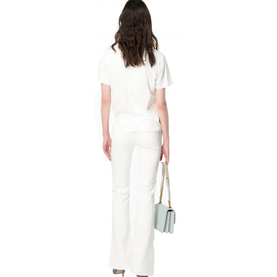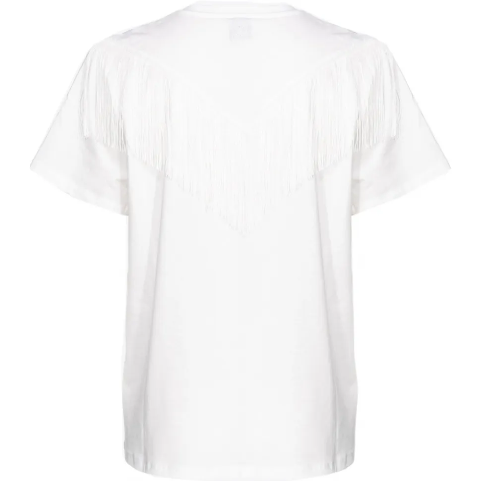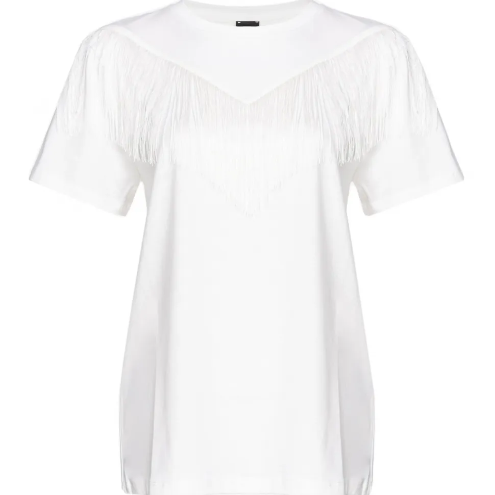 Pinko – T-Shirt with Thin Fringes Detail – White – T-Shirt – Made in Italy – Luxury Exclusive Collection