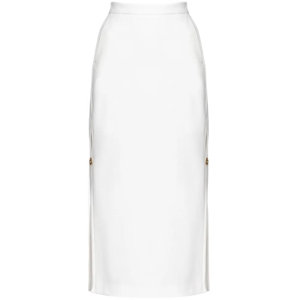 Pinko straight-line midi skirt in stretch viscose technical fabric worked in fabric stitch. High waist, pockets on the hips and double side slit closed by metal buttons personalised with Love Birds logo. Invisible zip fastening.