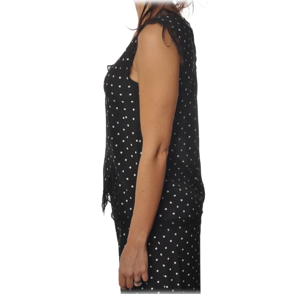 Pinko – Top Semolino1 V-neck in Pois Pattern – Black – Top – Made in Italy – Luxury Exclusive Collection