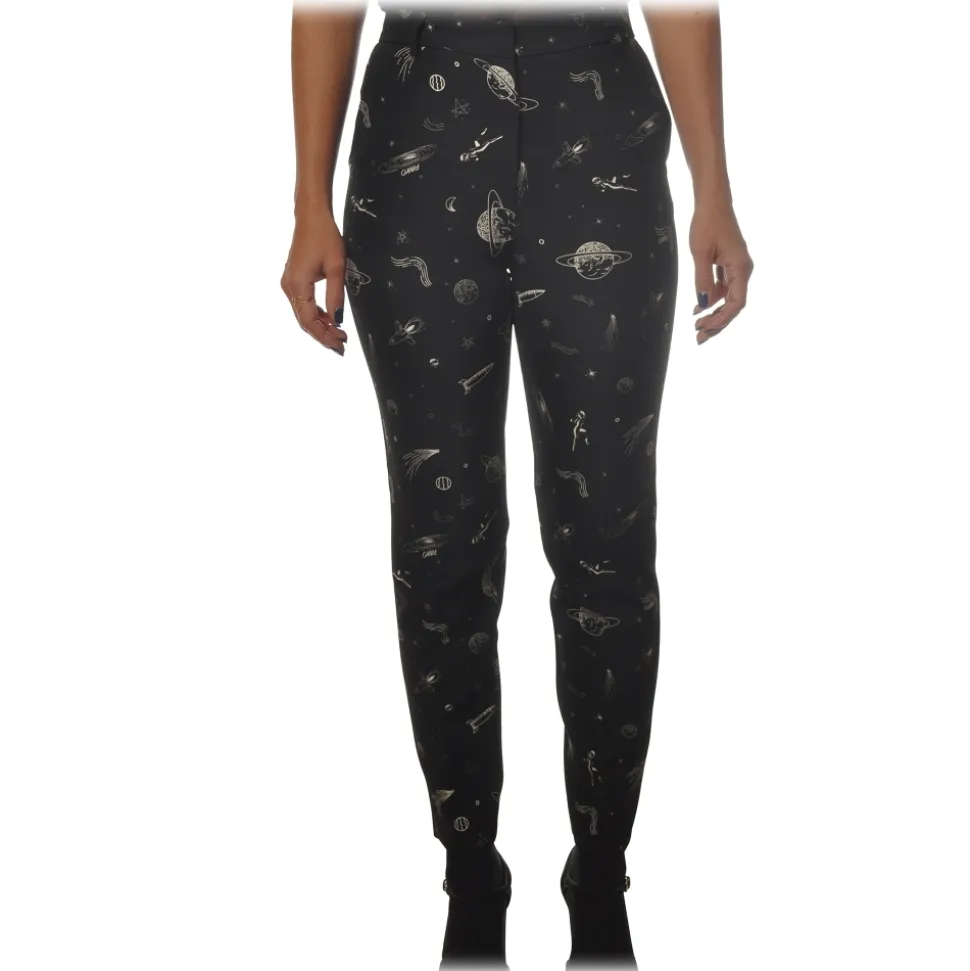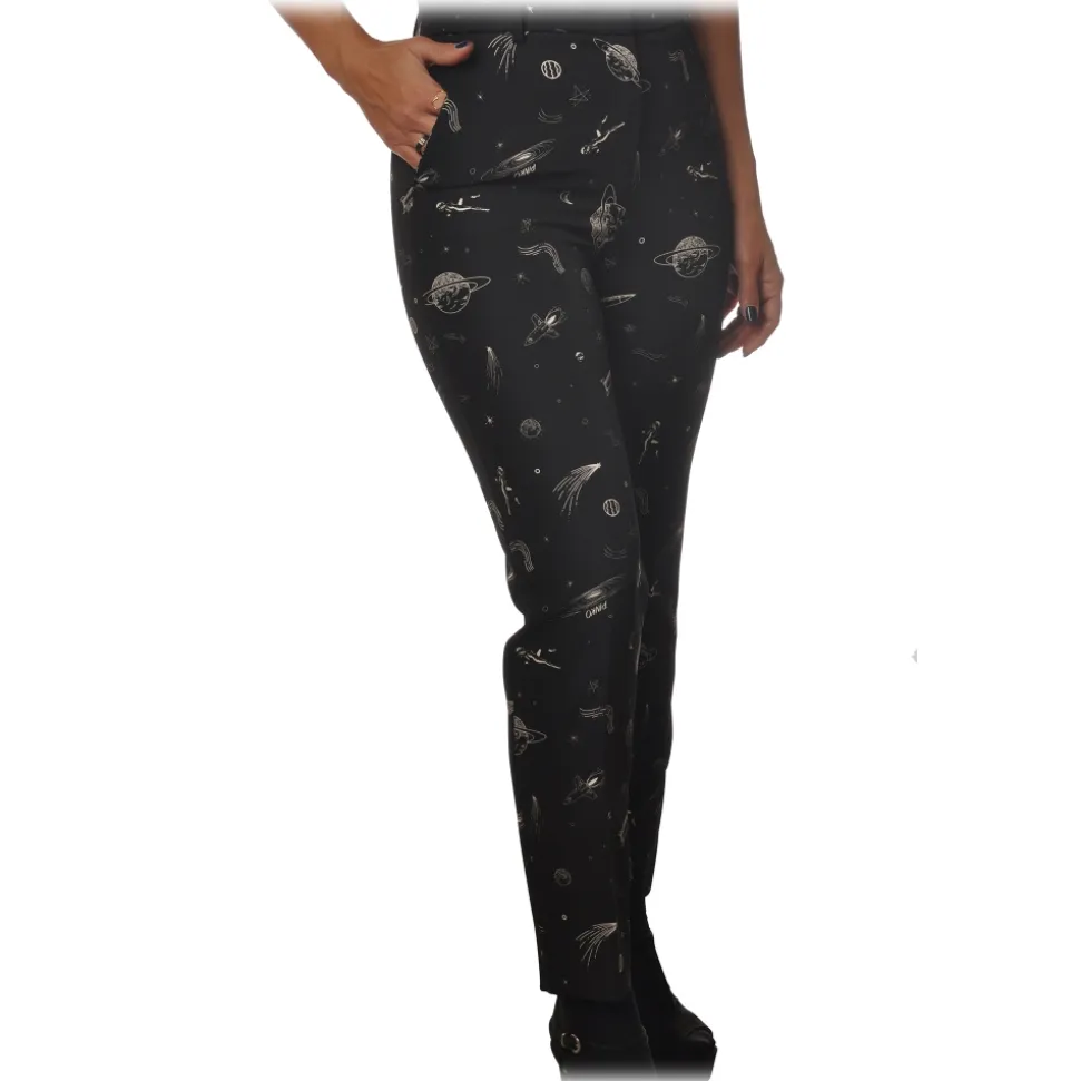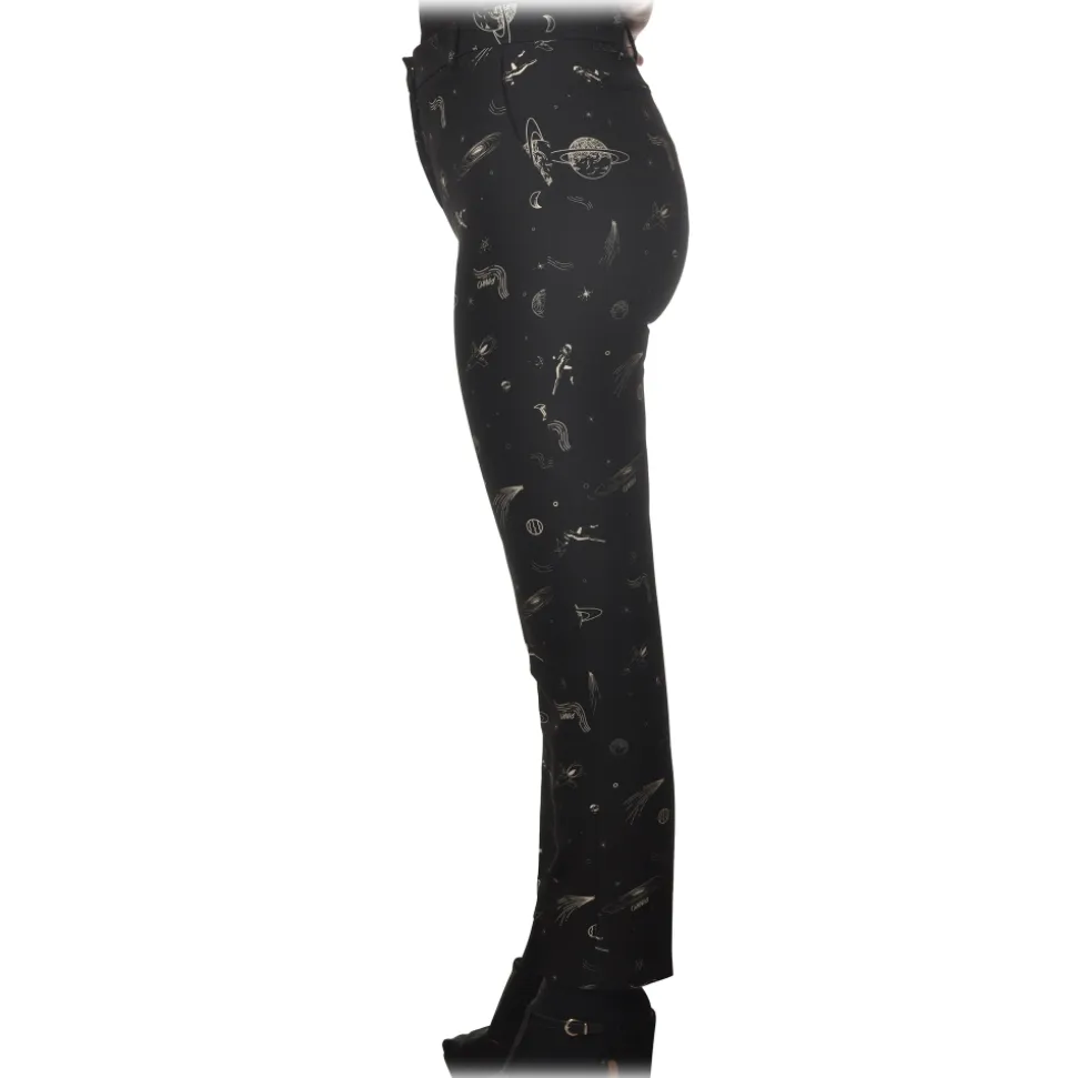Pinko – Trousers Bella11 Straight Leg Planet Print – Black – Trousers – Made in Italy – Luxury Exclusive Collection