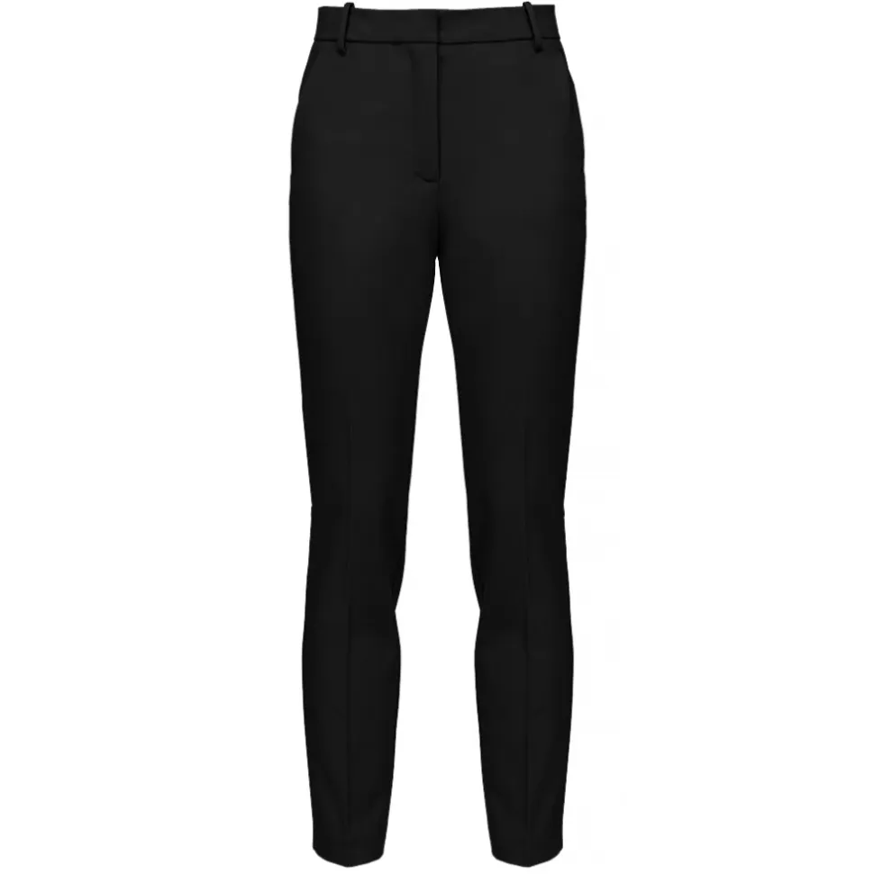 Pinko trousers, cigarette-style, high-waisted with front welt pockets, all made of stretch viscose technical fabric with a special scuba effect.