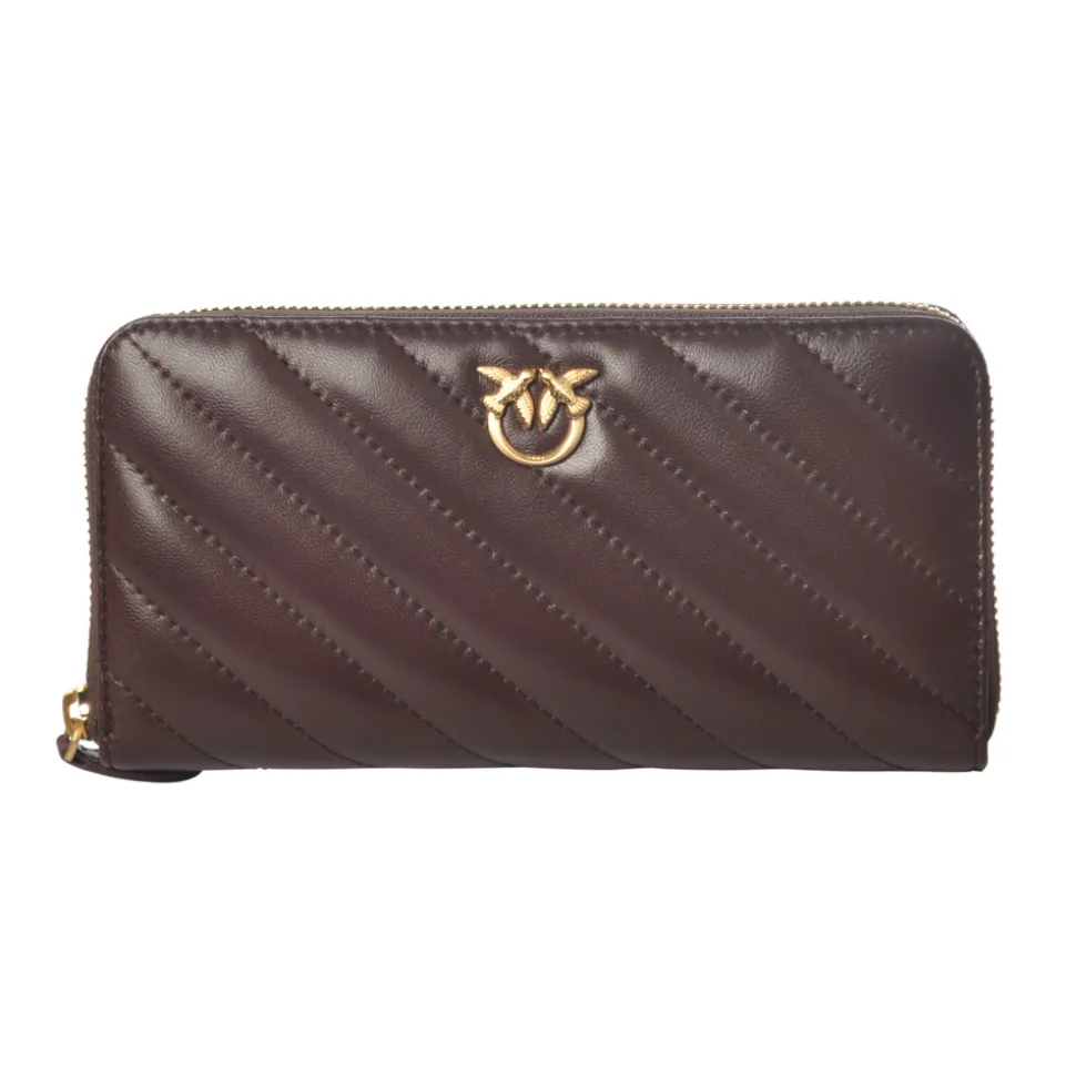 Rectangular wallet with central zip closure, entirely made of quilted leather with central double swallow logo, Pinko.