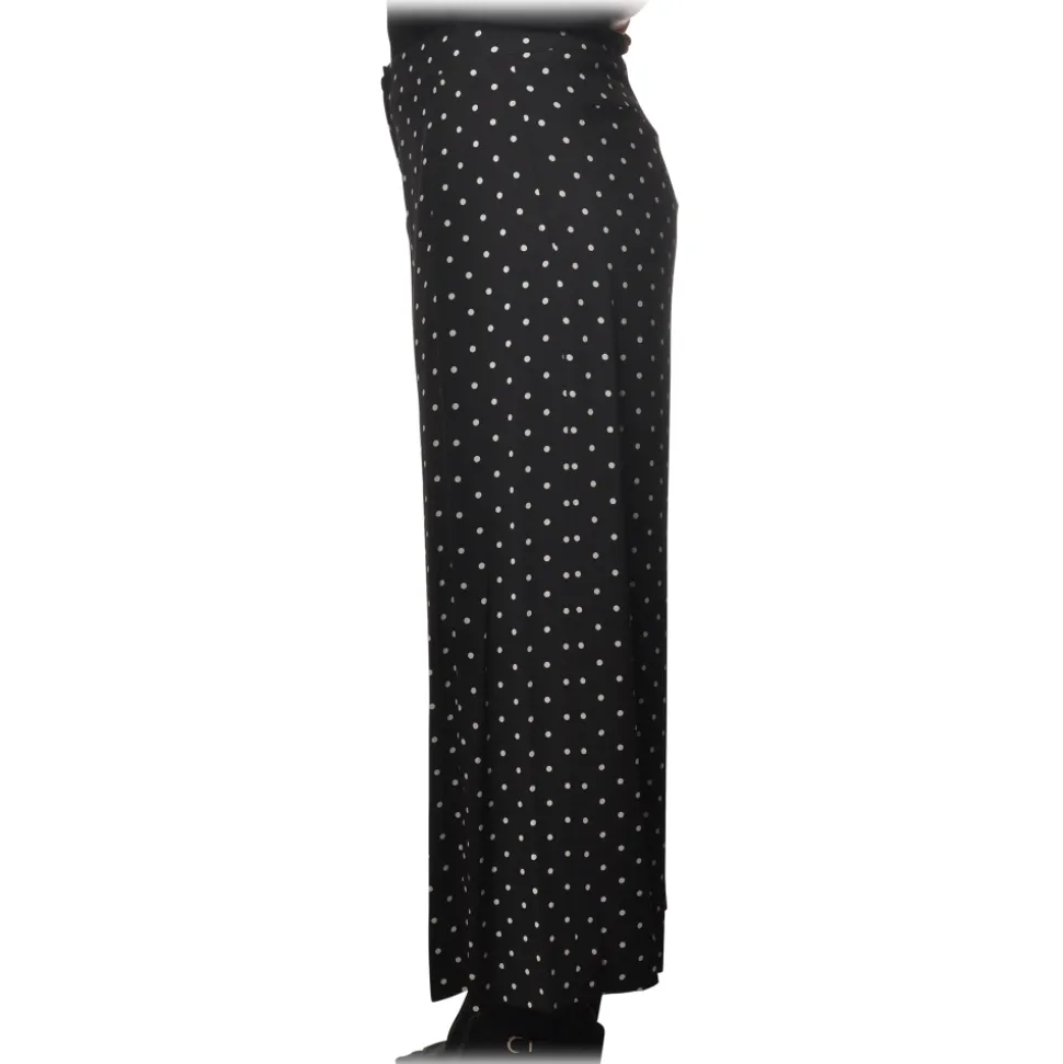 Pinko – Wide Leg Trousers Crembrule in Pois Pattern – Black – Trousers – Made in Italy – Luxury Exclusive Collection