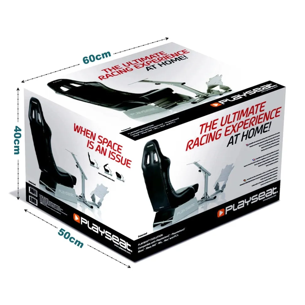 The Evolution Black seat has a silver frame and is upholstered with durable black vinyl for many hours of racing! It can be used by adults and children, so all your friends and family members can enjoy this chair. This seat is very comfortable, stable and highly adjustable. Thanks to its unique, patented foldable design, it uses little space when not in use.