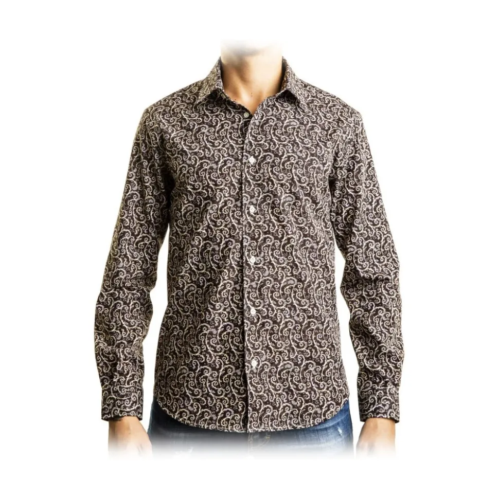 Patterned shirt in shades of brown. Buttons in tone. Fabric composition 100% Cotton. Made in Italy.