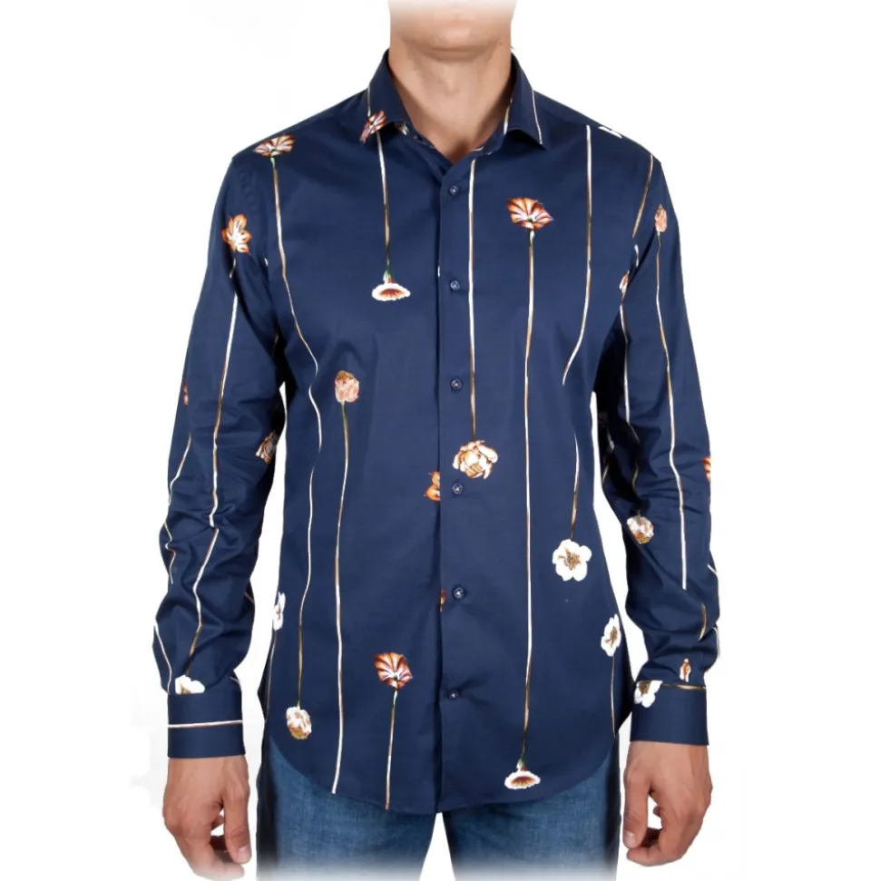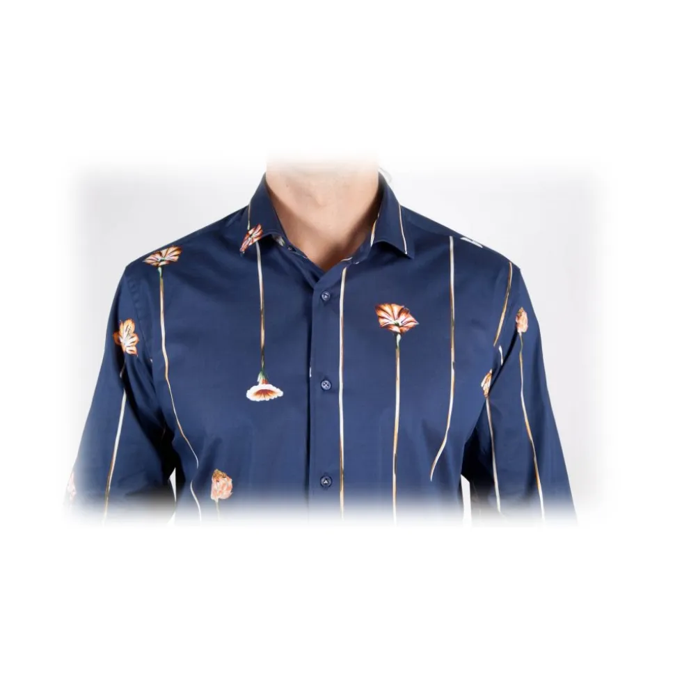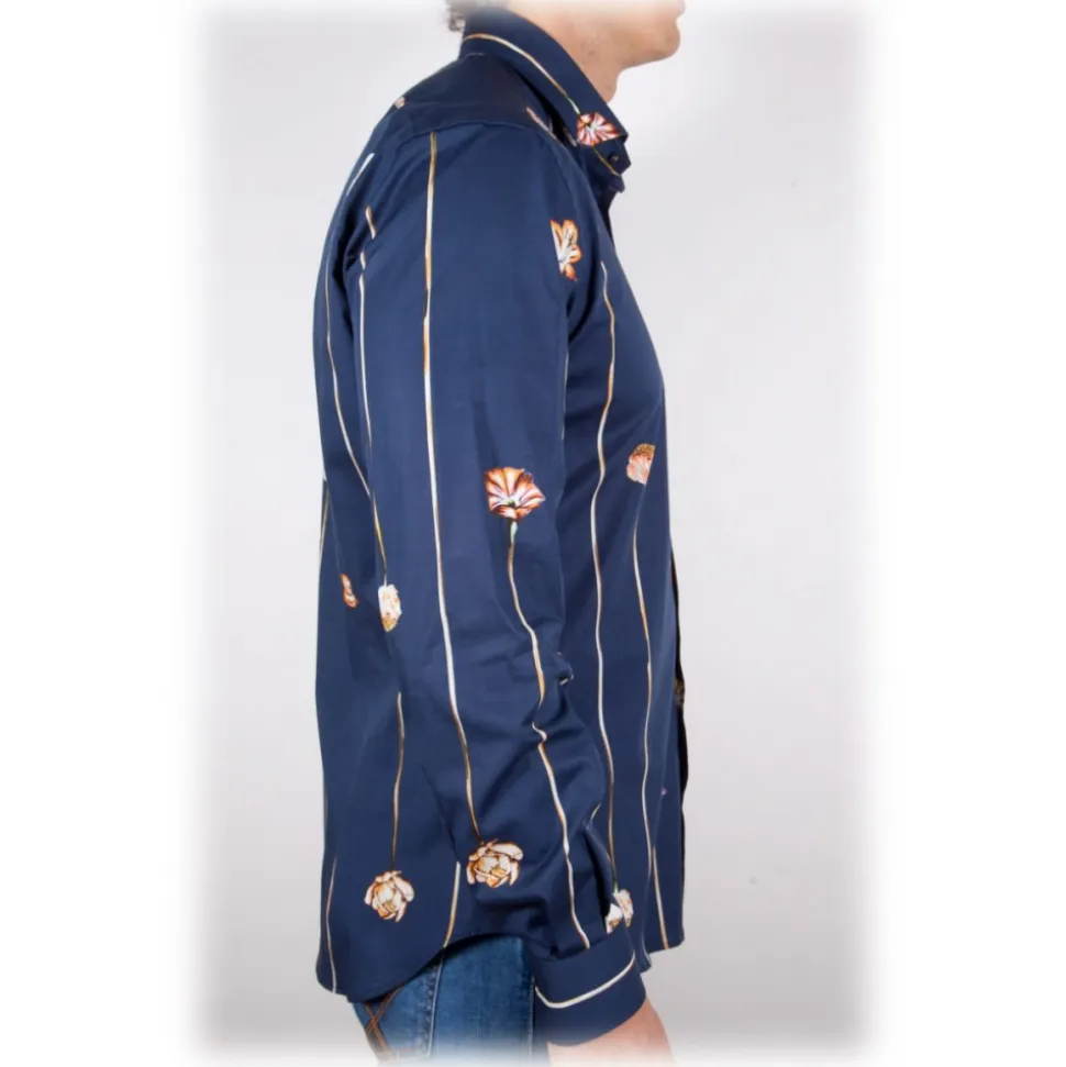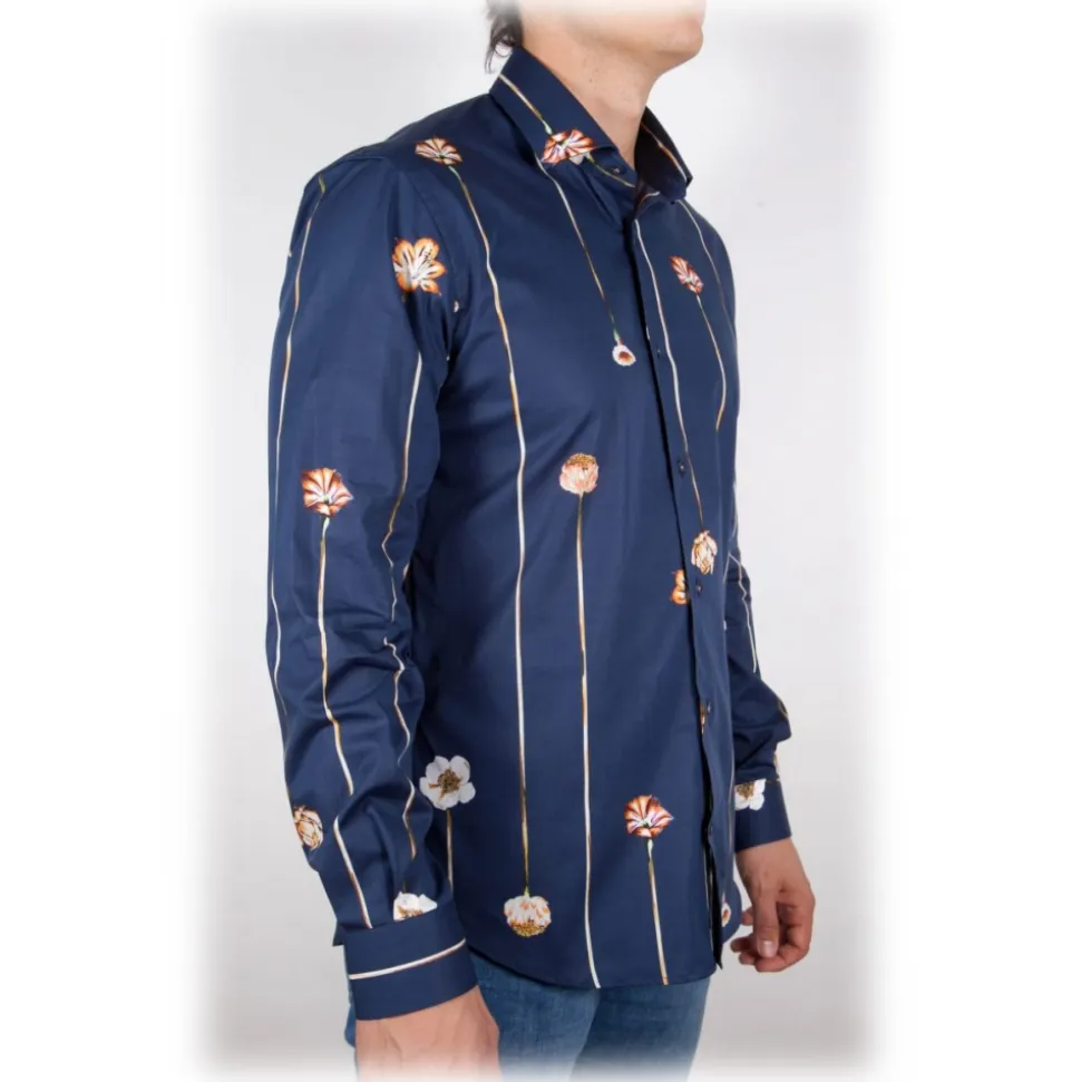 Poggianti 1985 – Blue Fantasy Shirt French Collar – Handmade in Italy – New Luxury Exclusive Collection