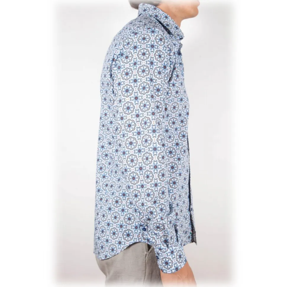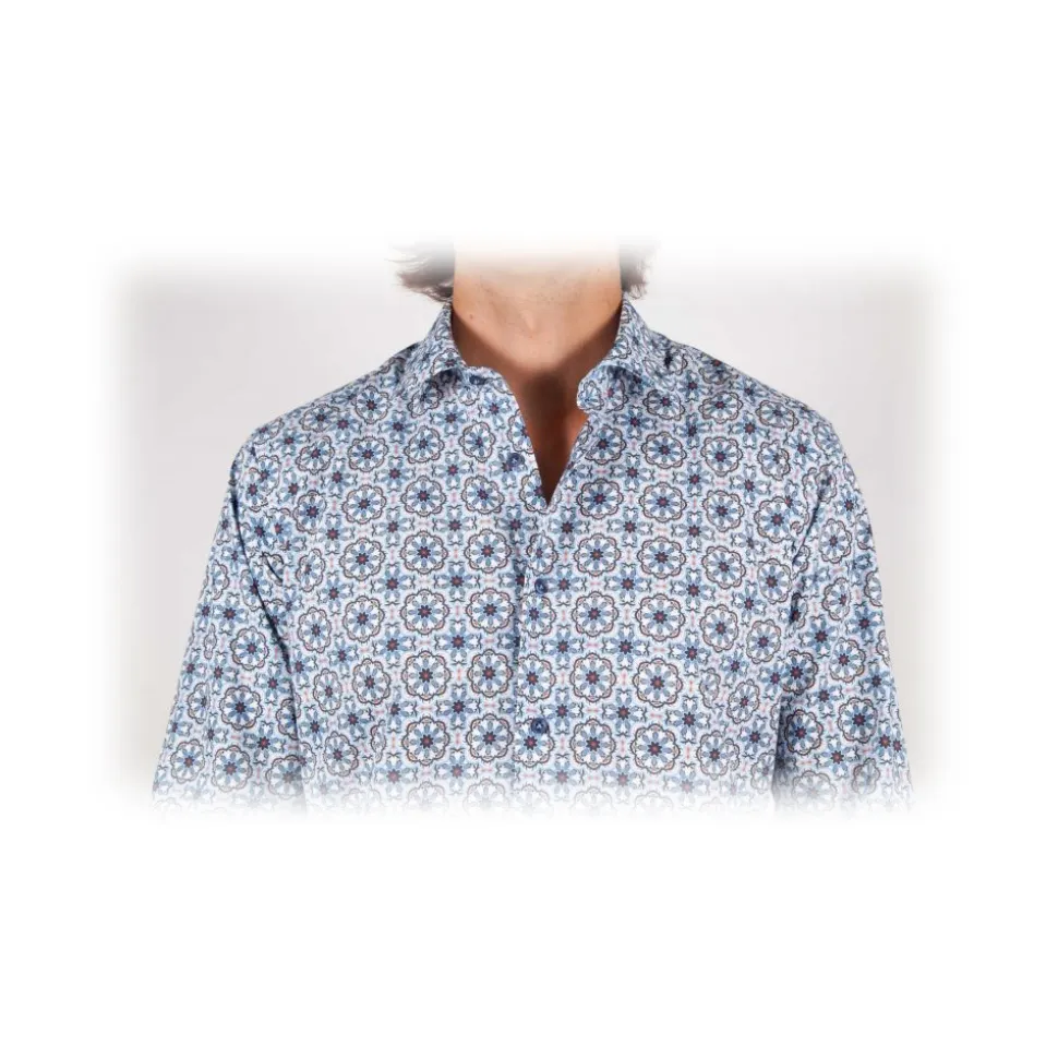 Poggianti 1985 – Blue Soft Collar Patterned Shirt – Handmade in Italy – New Luxury Exclusive Collection