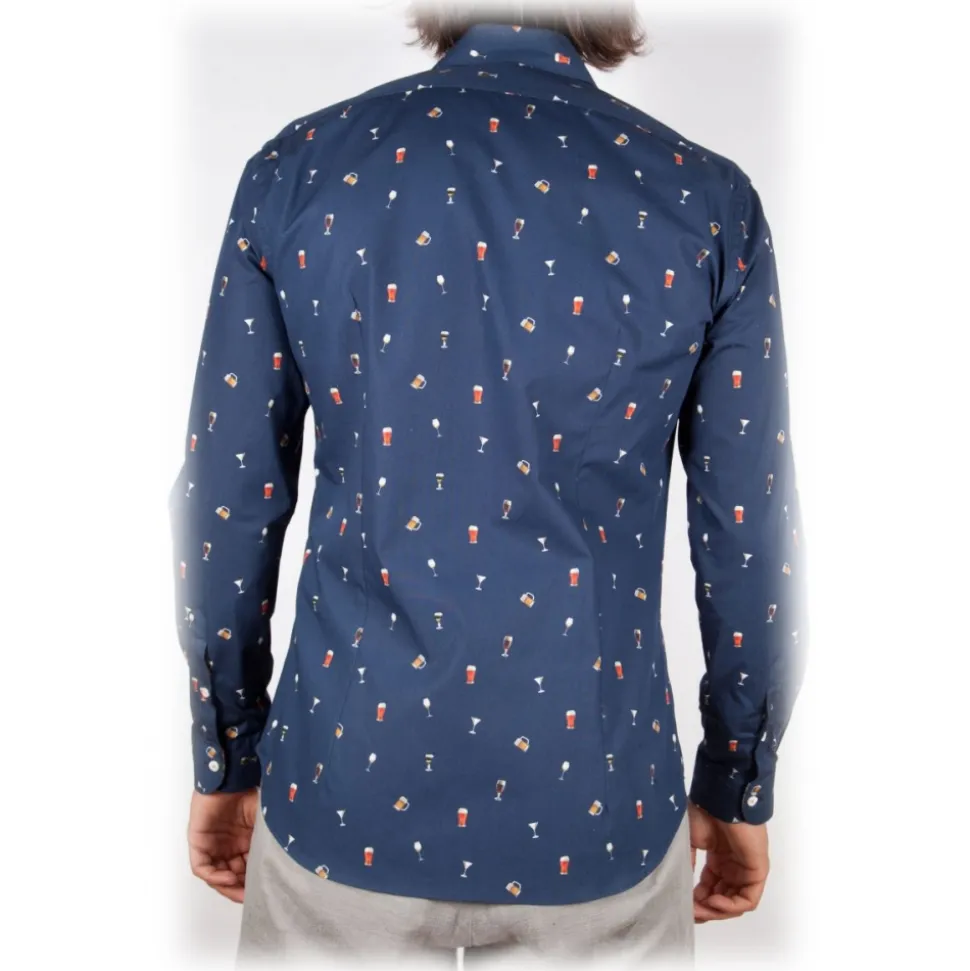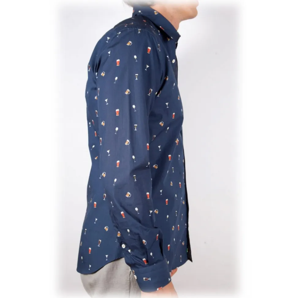 Poggianti 1985 – Blue Soft Collar Patterned Shirt – Handmade in Italy – New Luxury Exclusive Collection