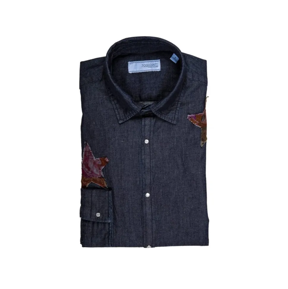 Poggianti 1985 – Denim Shirt with Patchwork Stars – Handmade in Italy – New Luxury Exclusive Collection