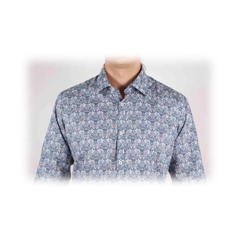 Fantasy shirt with small Italian collar, Slim fit sewn in the best sartorial tradition.
