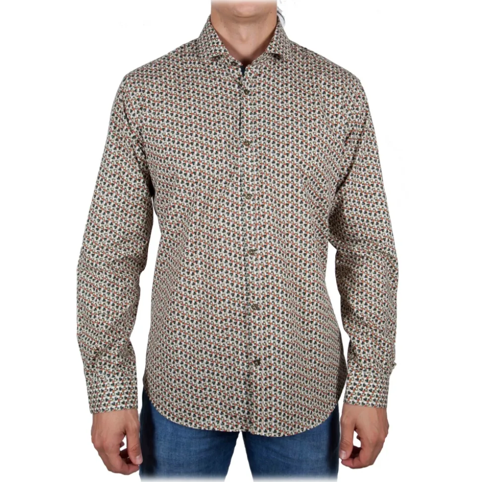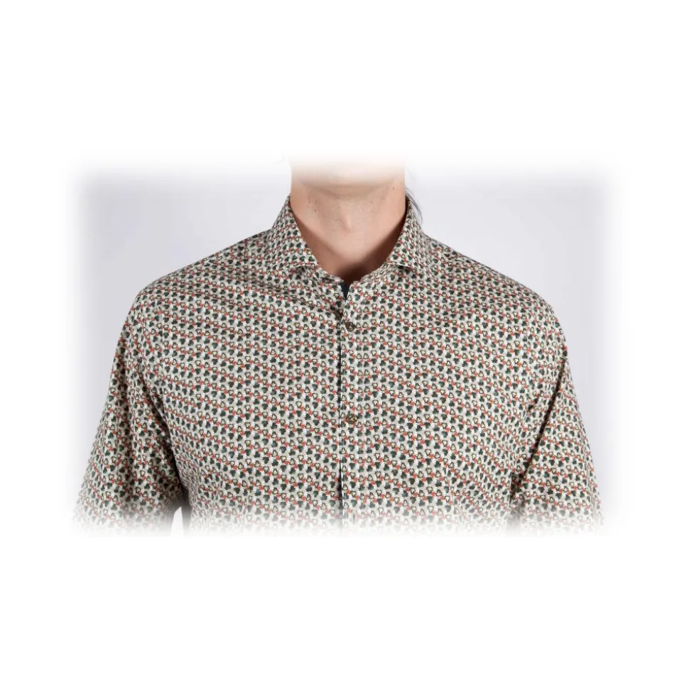 Patterned shirt with small French collar, Slim fit sewn in the best sartorial tradition.