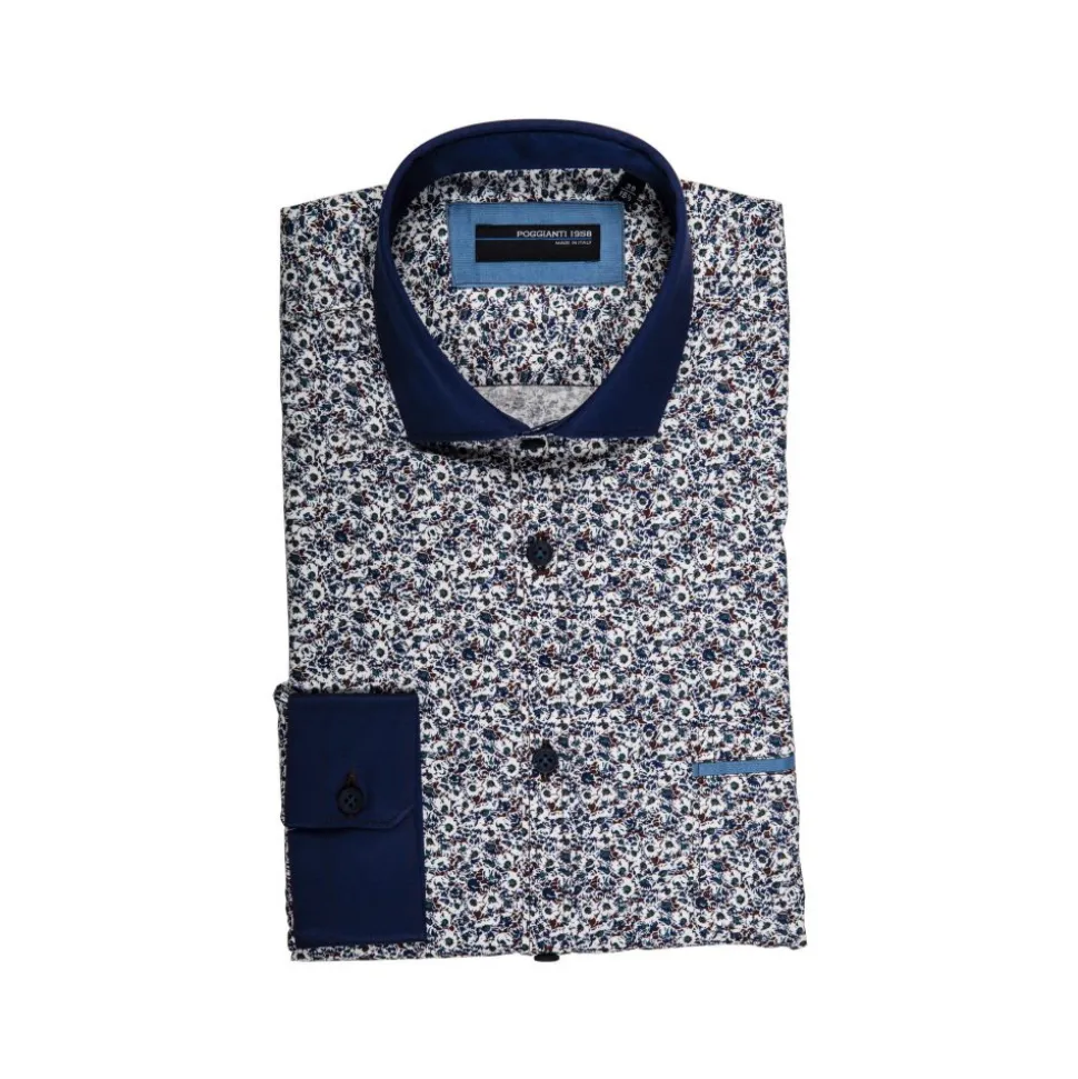Poggianti 1985 – Fancy Shirt Collar and Cuffs in Contrast – Handmade in Italy – New Luxury Exclusive Collection