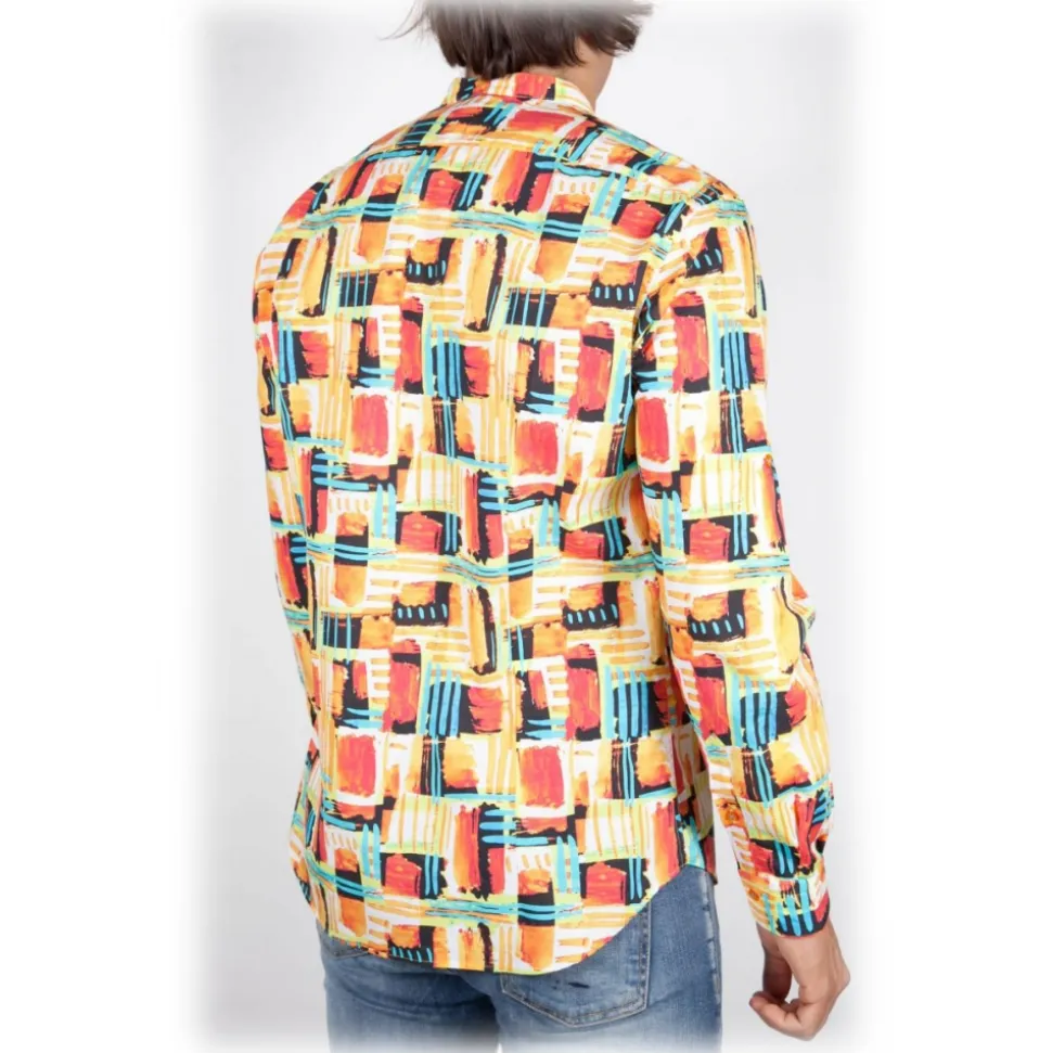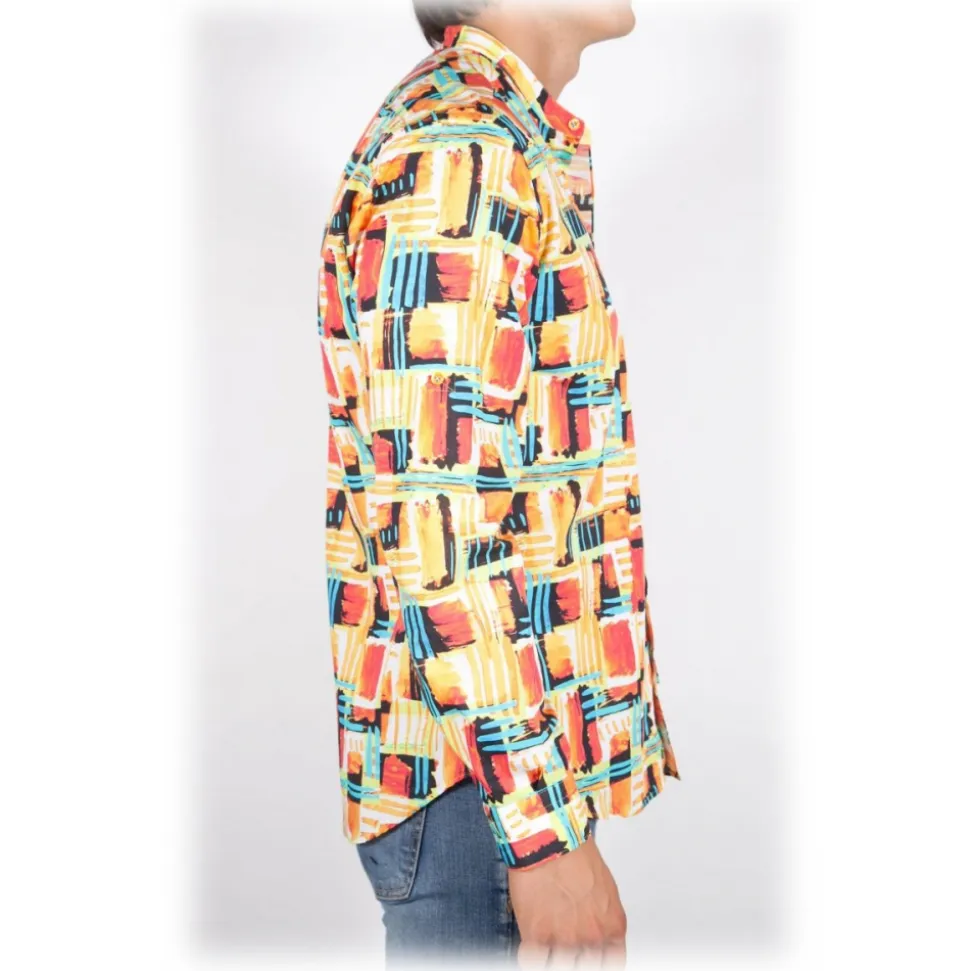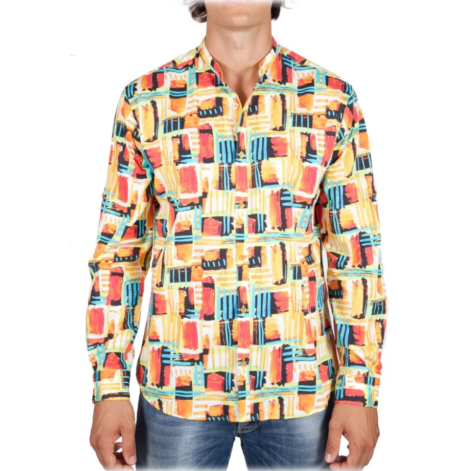 Poggianti 1985 – Fantasy Shirt Korean Collar Multicolor – Handmade in Italy – New Luxury Exclusive Collection