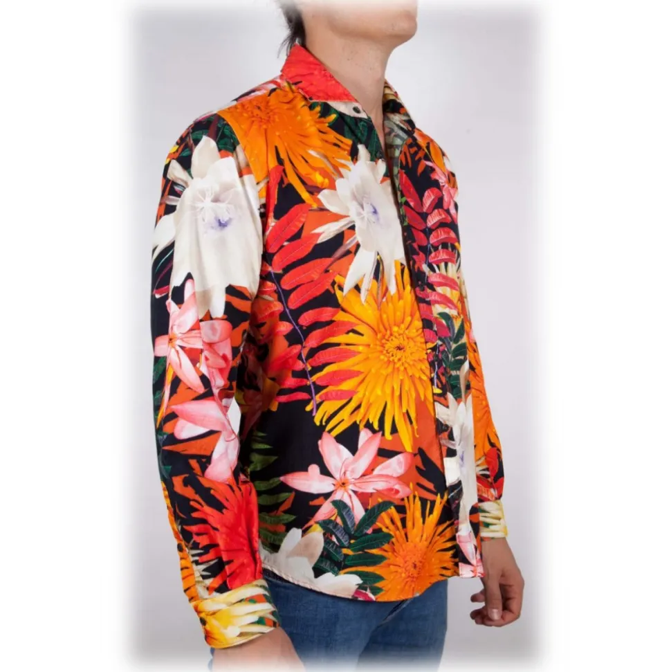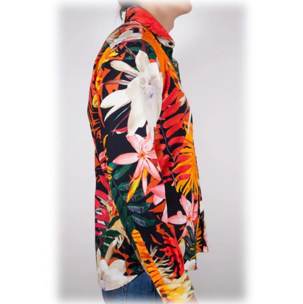 Colored velvet shirt with large floral print. Buttons in tone. Composition 100% COTTON – Made in Italy.