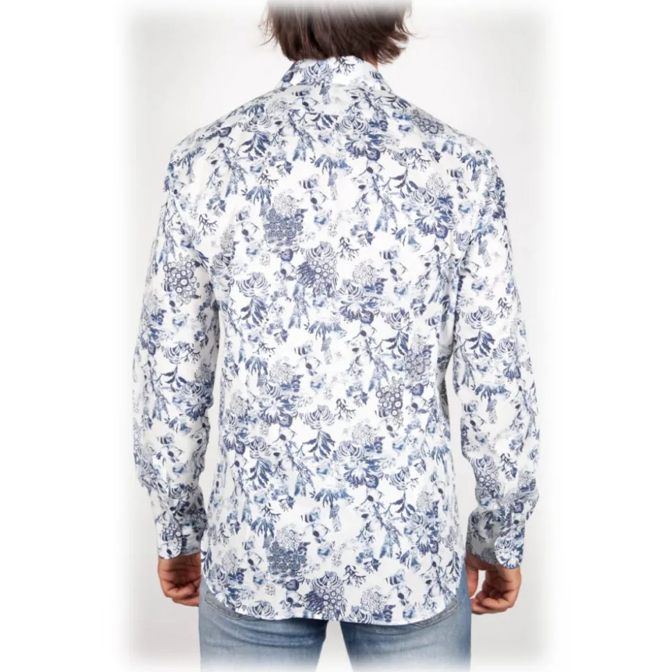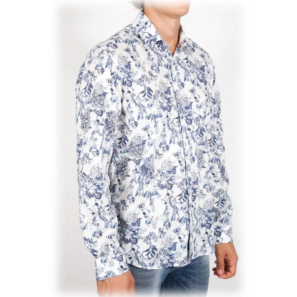 Cotton shirt by Cotonificio Albini with patterned fabric. Buttons in tone. Composition 100% COTTON – Made in Italy.