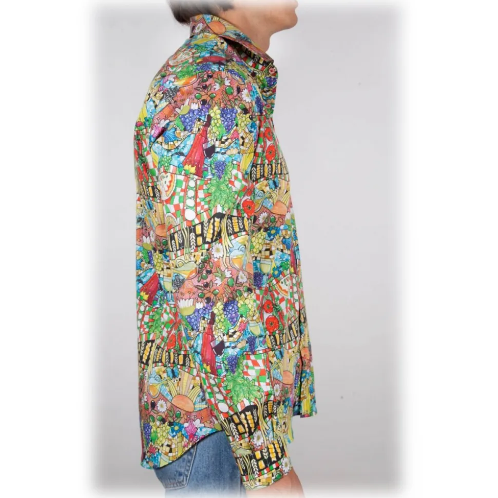 Patterned stretch cotton shirt. Buttons in tone. Composition 97% COTTON 3% ELASTANE- Made in Italy.