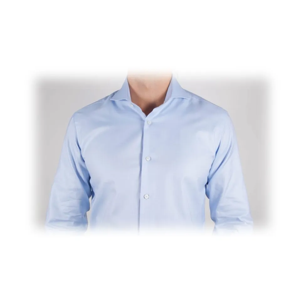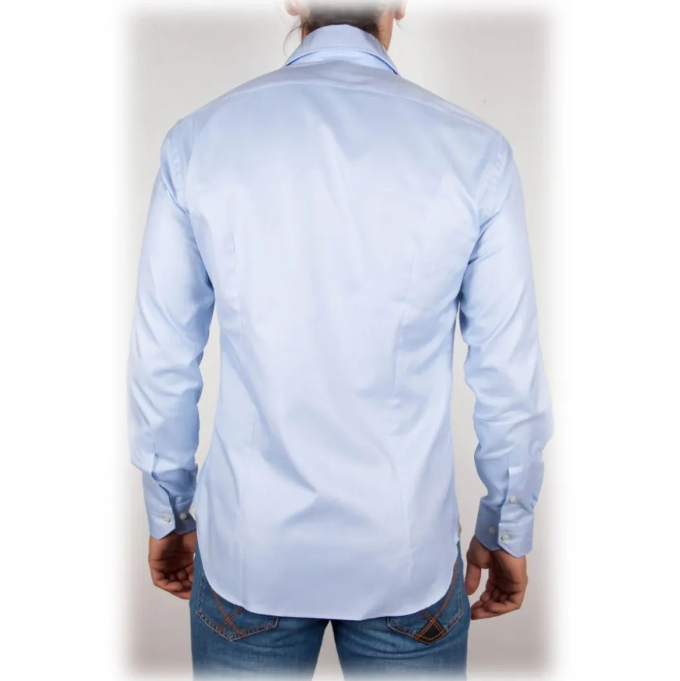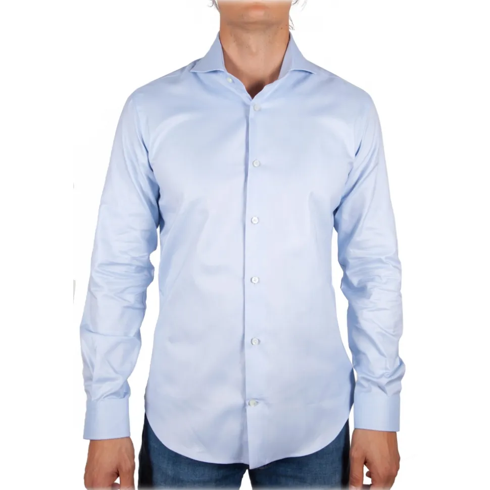 Celeste Classic shirt with Italian collar, Slim fit sewn in the best sartorial tradition.