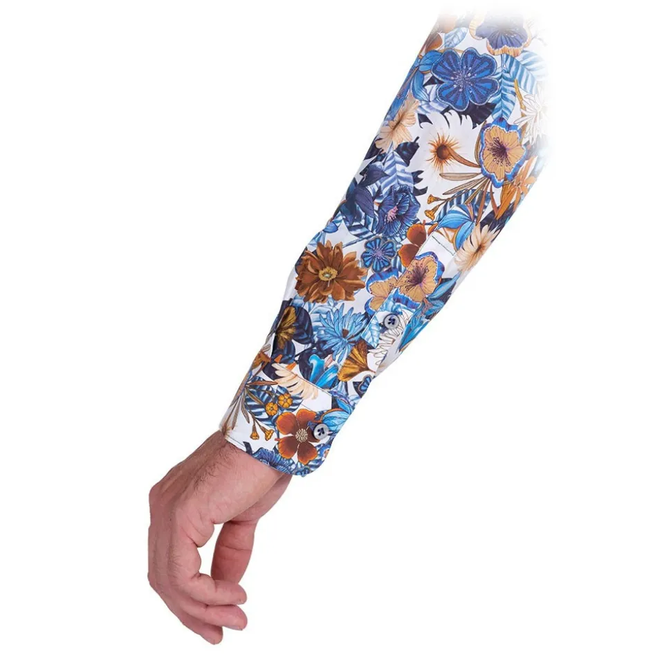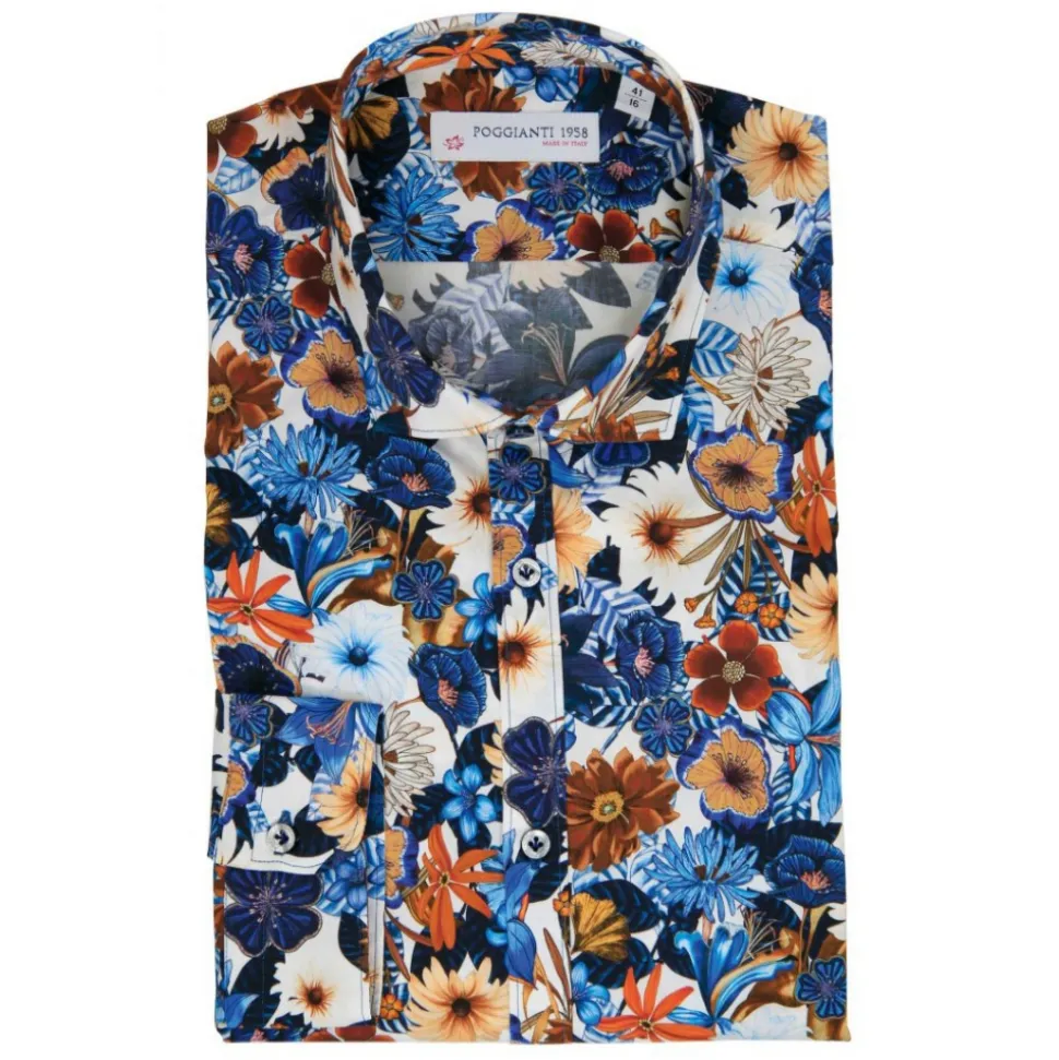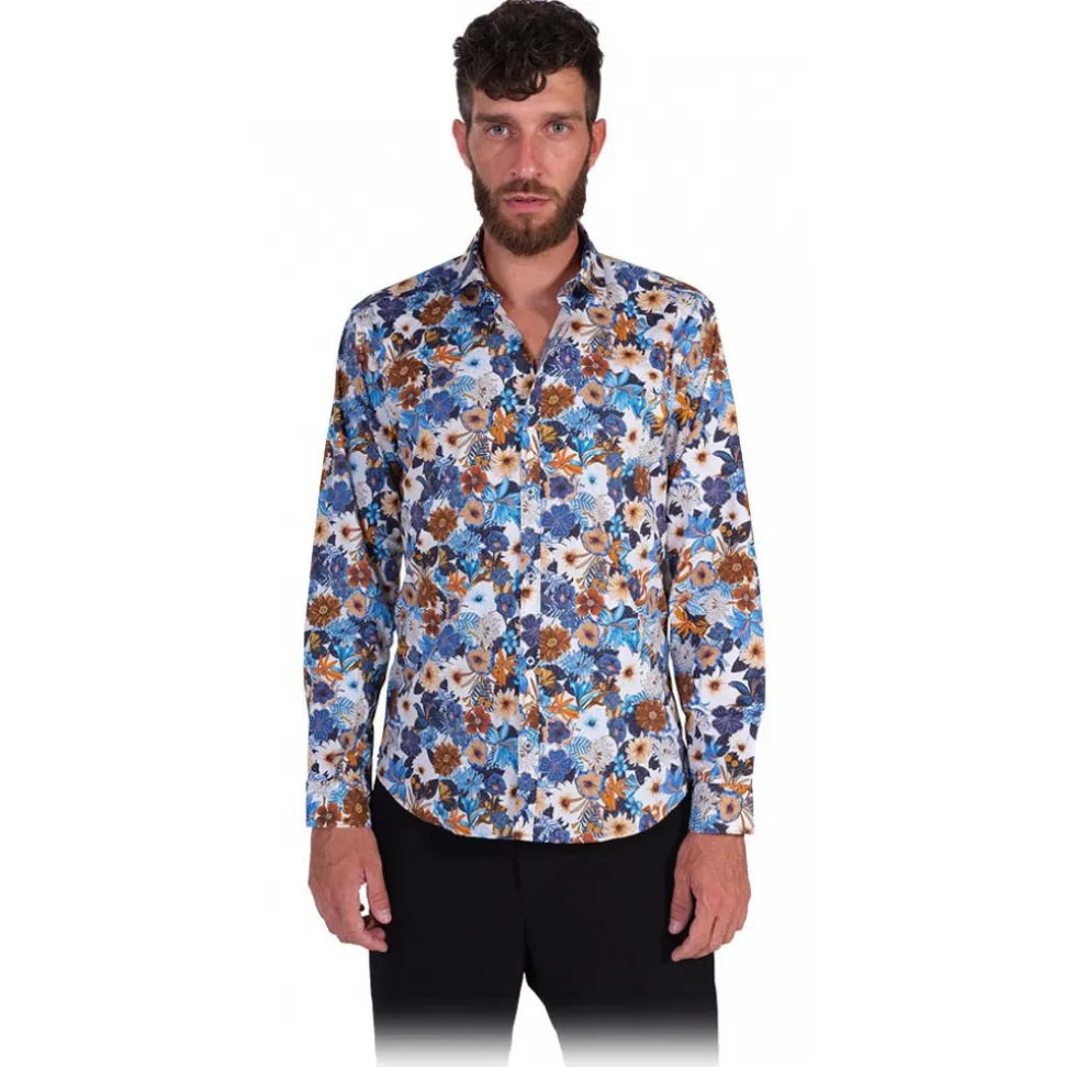 Stretch cotton shirt with multicolored floral pattern. Buttons in tone. Composition 97% COTTON 3% ELASTANE – Made in Italy.