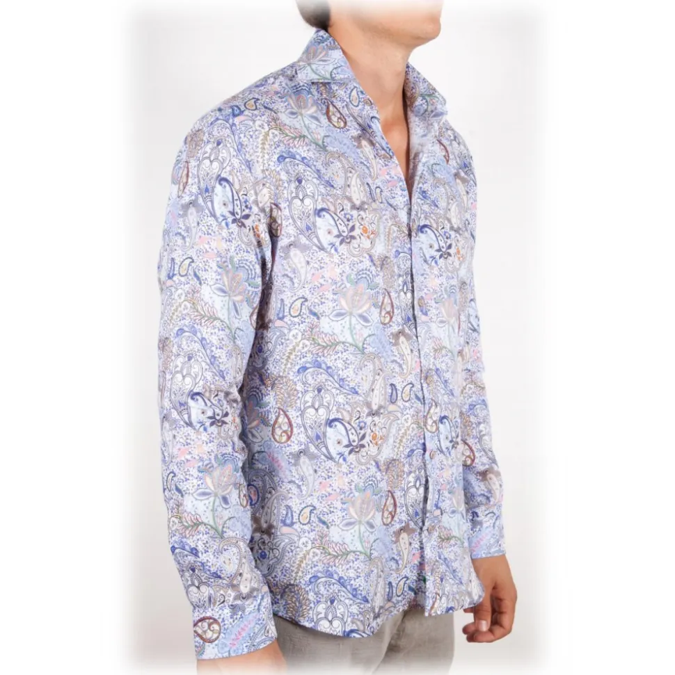 Poggianti 1985 – Linen Fantasy Shirt French Collar – Handmade in Italy – New Luxury Exclusive Collection